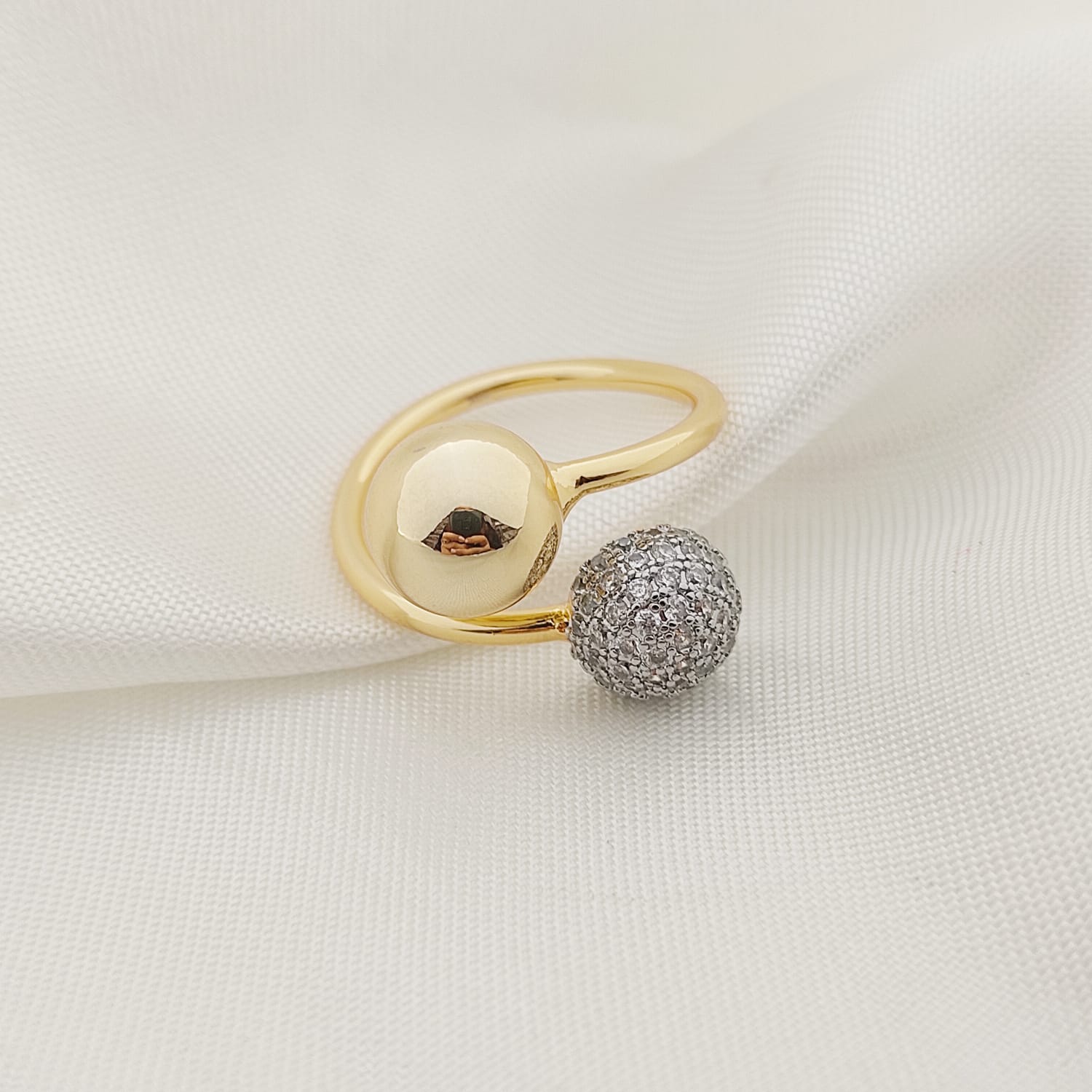 ANILLO ABIERTO CON PUNTAS EN BOLAS LISAS Y PAVE