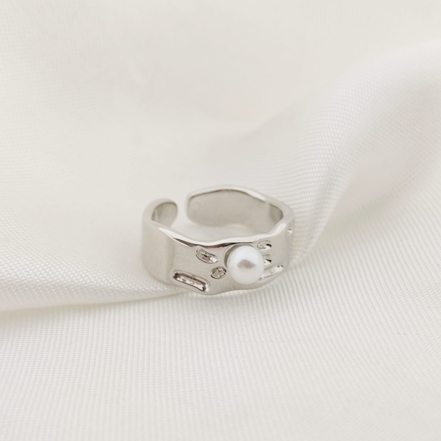 ANILLO BANDA IRREGULAR CON PERLA