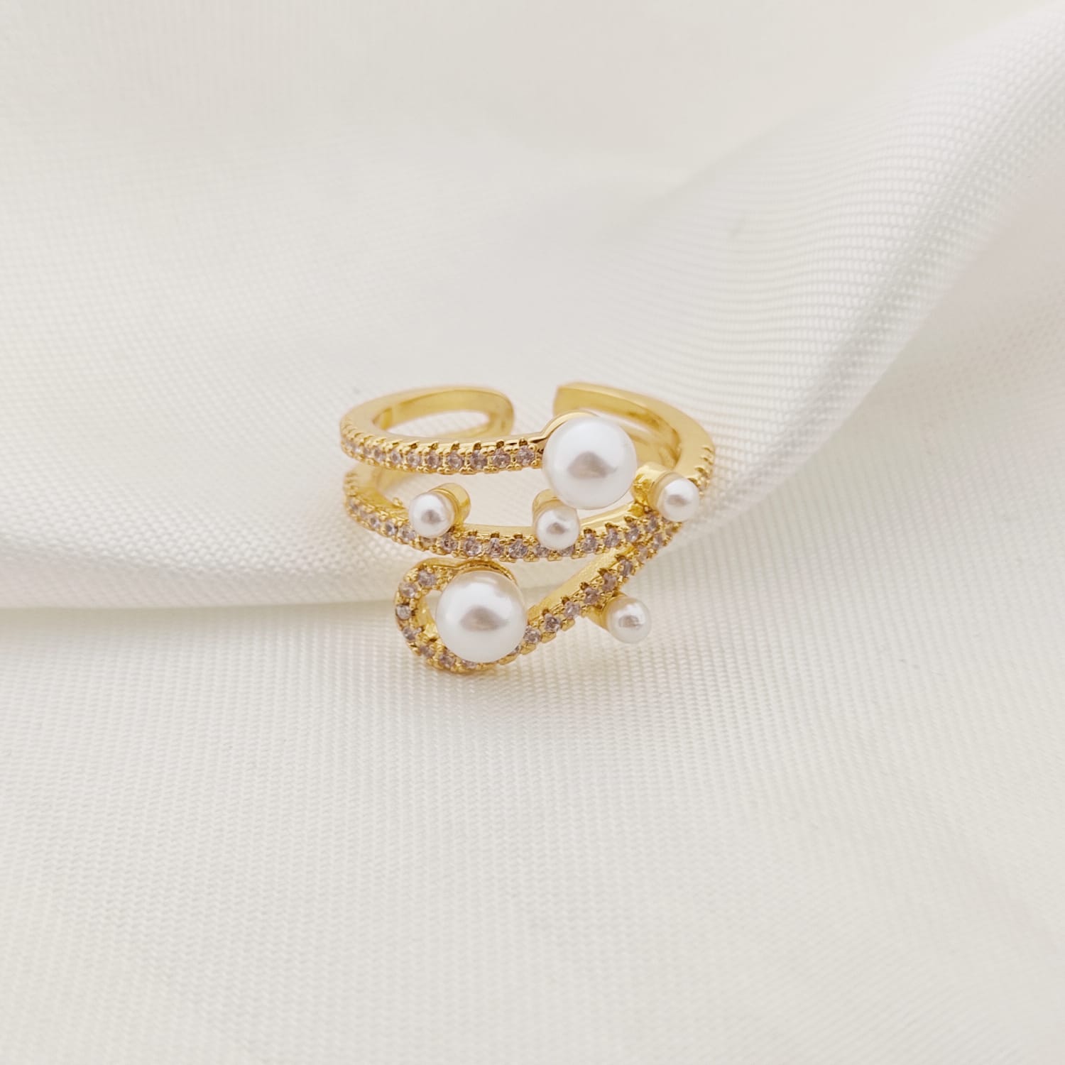 ANILLO CON ZIRCONIAS Y PERLA EN PUNTAS