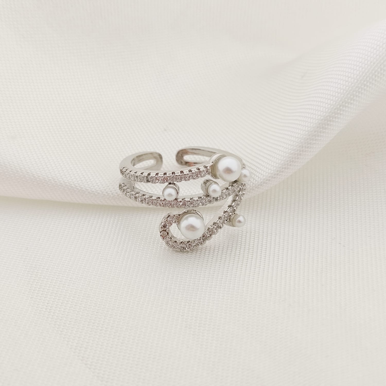 ANILLO CON ZIRCONIAS Y PERLA EN PUNTAS