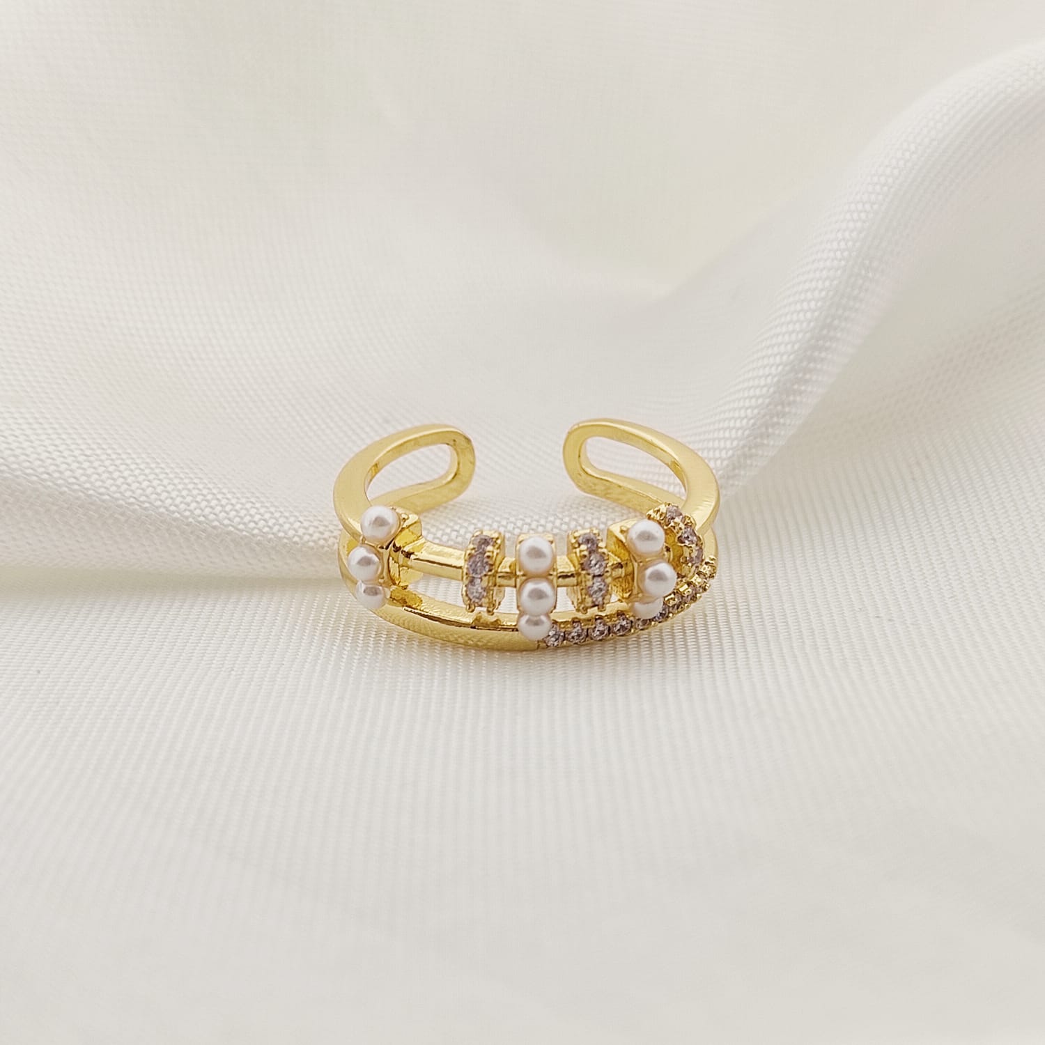 ANILLO DOBLE CON BARRILITOS ZIRCONIA Y PERLA