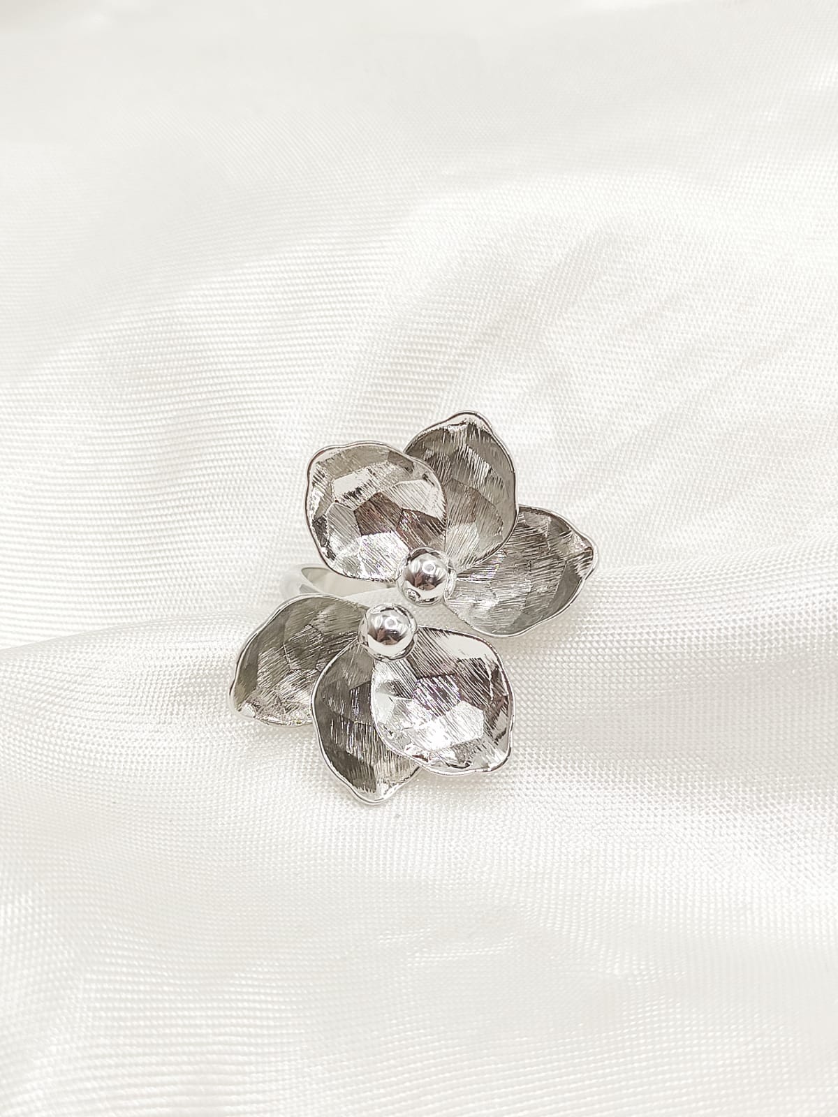ANILLO DOS MITADES DE FLORES FACETADAS