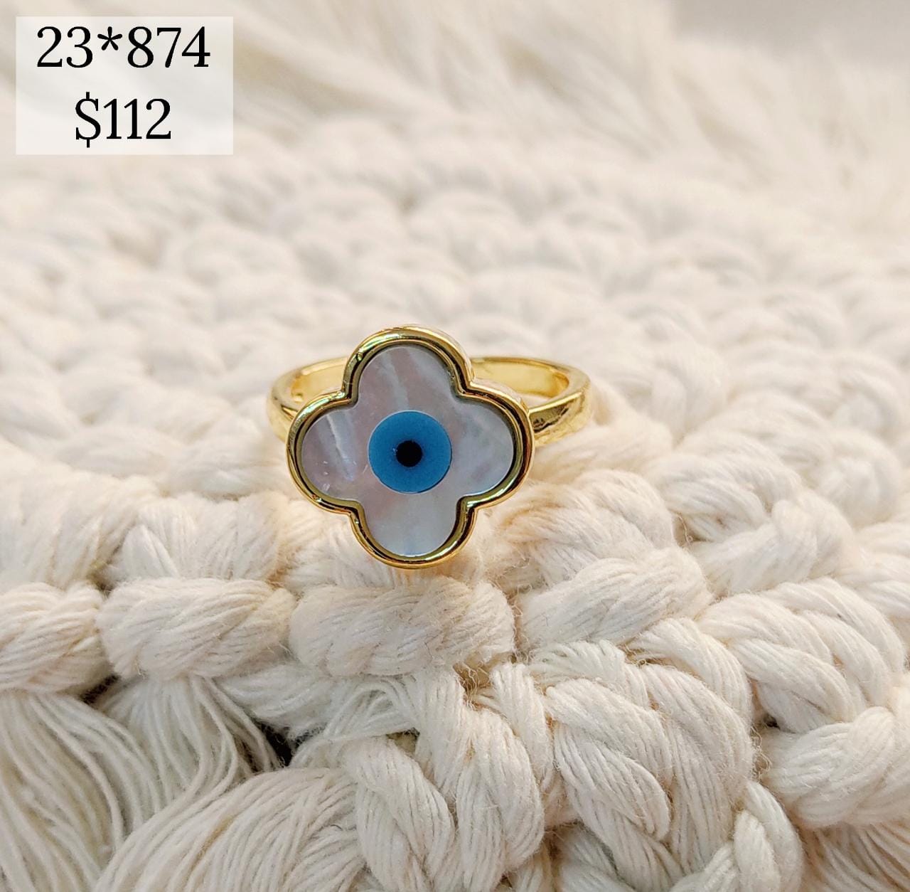 anillo flor 4 lados fondo madre perla ojo