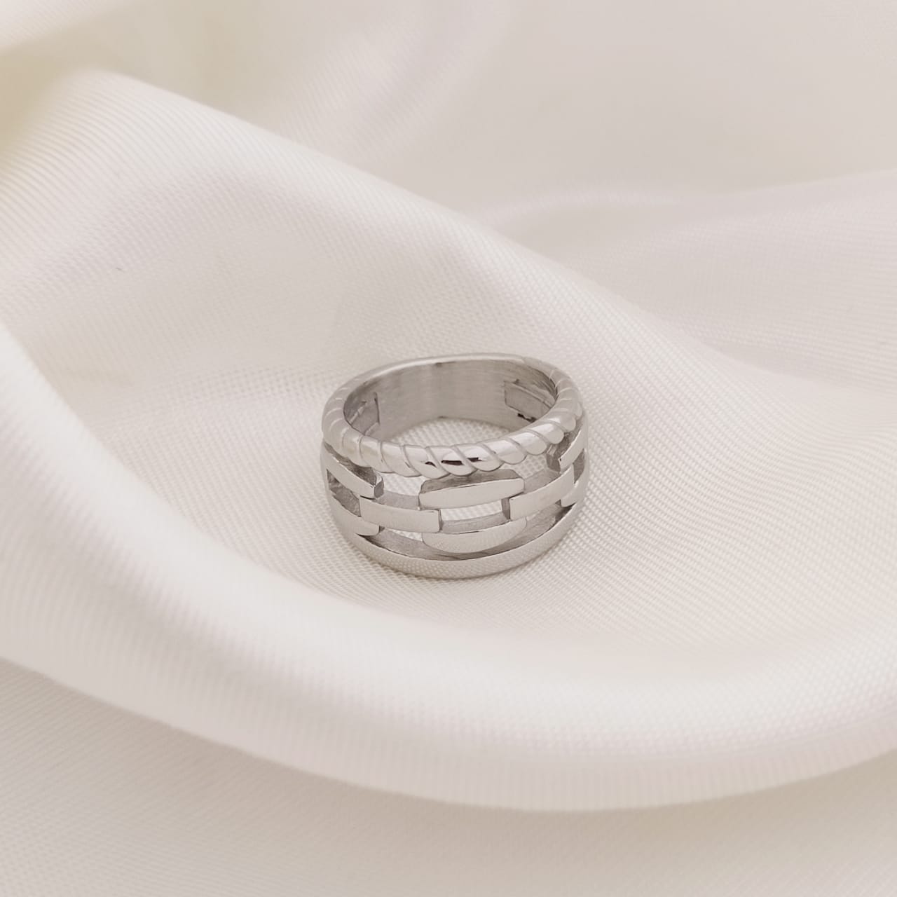 ANILLO LINEA LISA Y TORSAL CON CADENA PLANCHADA CENTRO RECTANGULAR