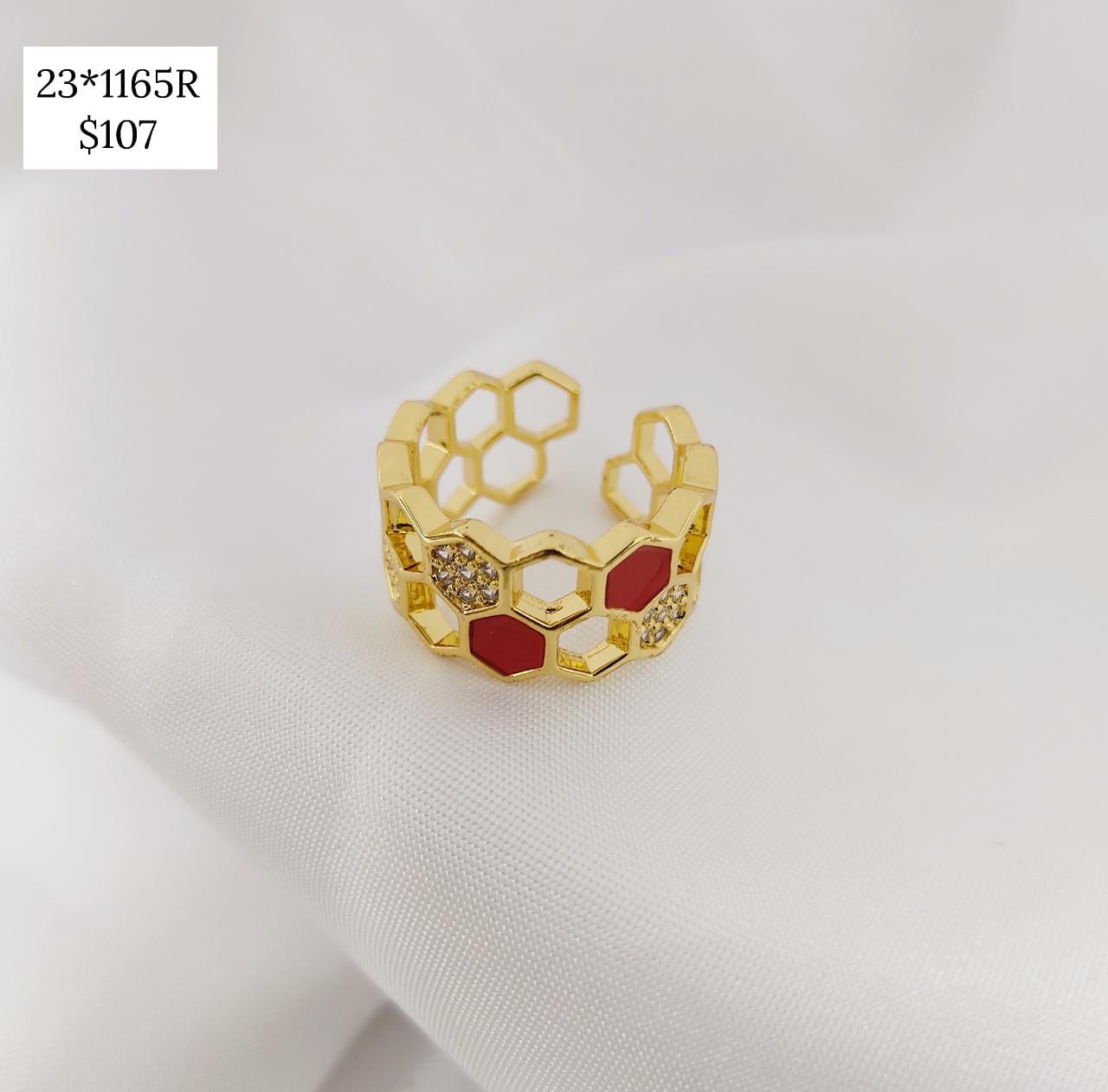ANILLO PANAL CON FONDO COLOR Y CIRCONIAS