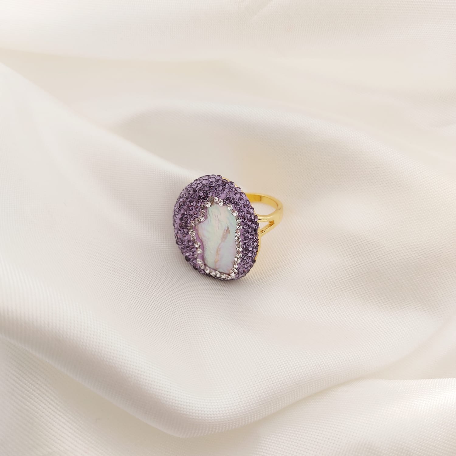 ANILLO PERLA NATURAL ABSTRACTA CON ZIRCONIAS ALREDEDOR