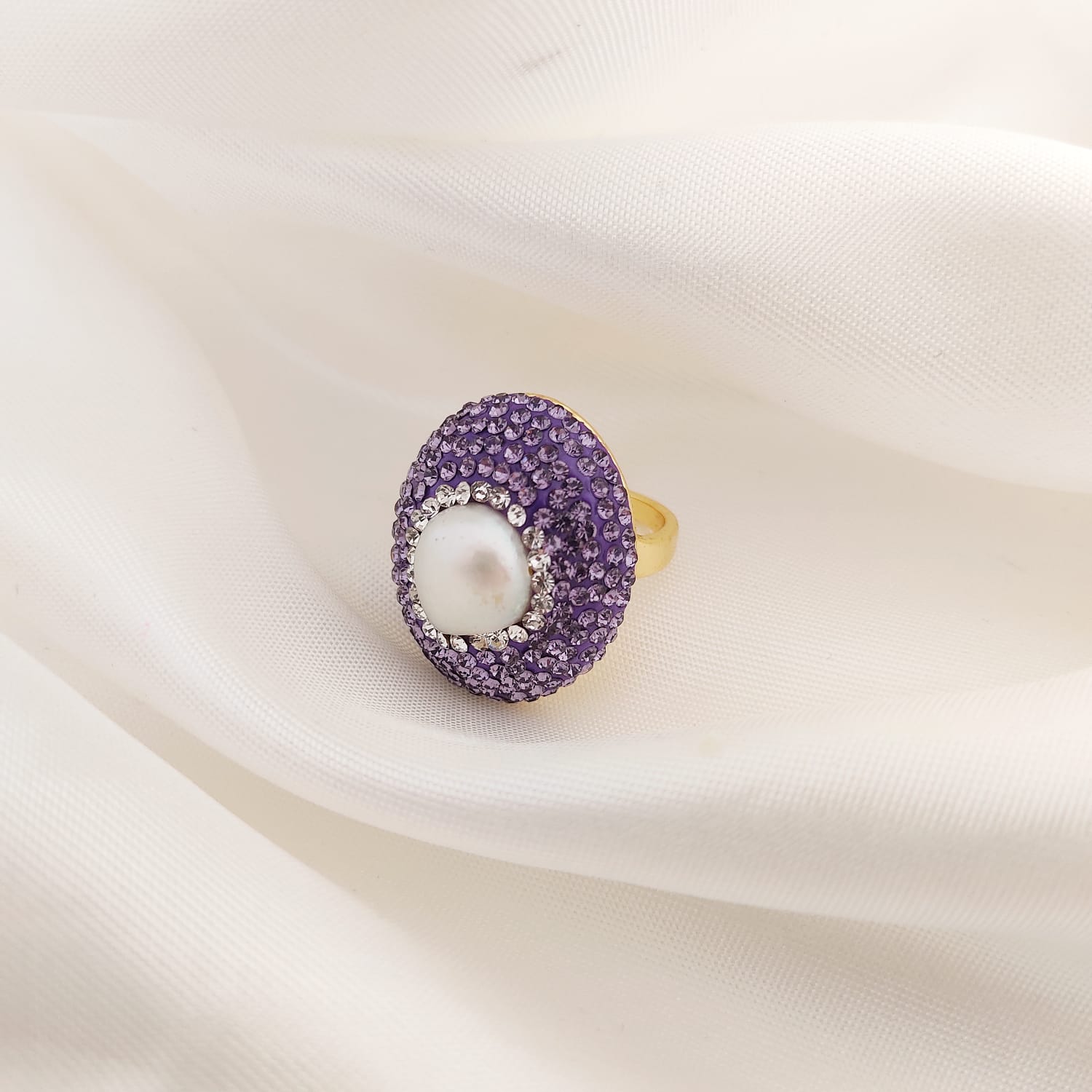 ANILLO PERLA NATURAL FORMA GOTA CON ZIRCONIAS ALREDEDOR
