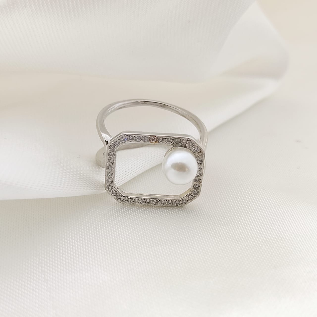 ANILLO RECTANGULO CIRCONIAS CON PERLAS ESQUINA