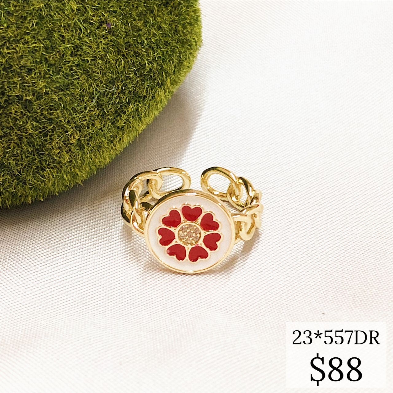 ANILLO TRENZADO CON FLOR DE 7 CORAZONES
