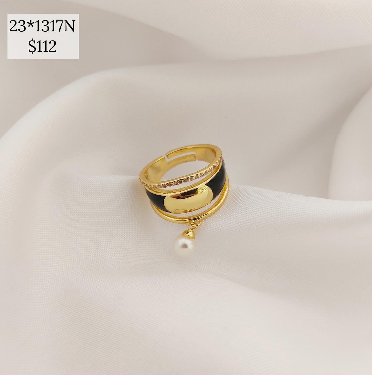 ANILLO TRIPLE ESMALTADO CON PERLA