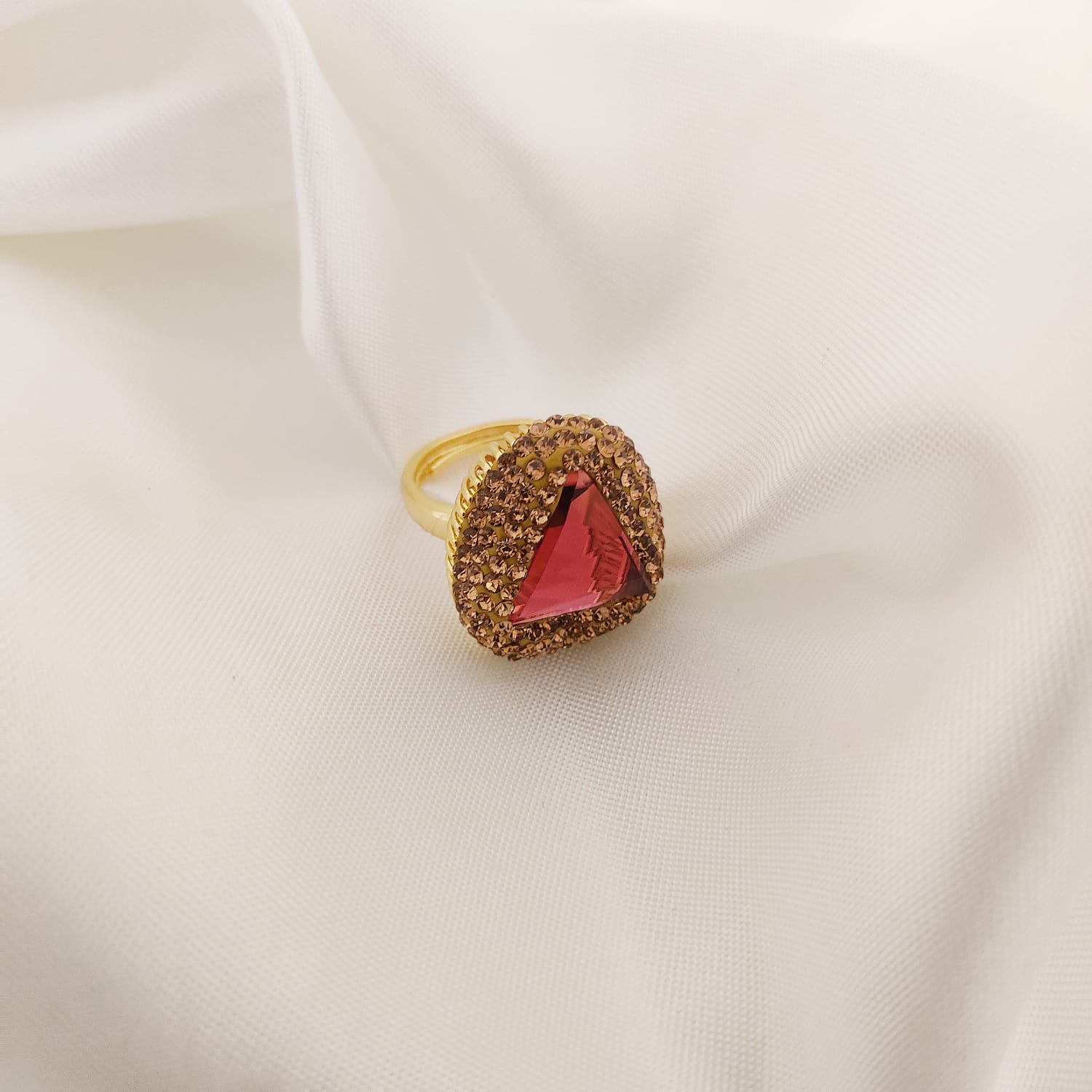 ANILLO TURCO ORO TRIANGULO CRISTAL FACETADO