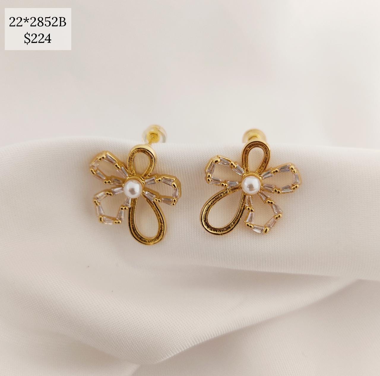 ARETE FLOR ZIRCONIA Y PERLA A MEDIAS