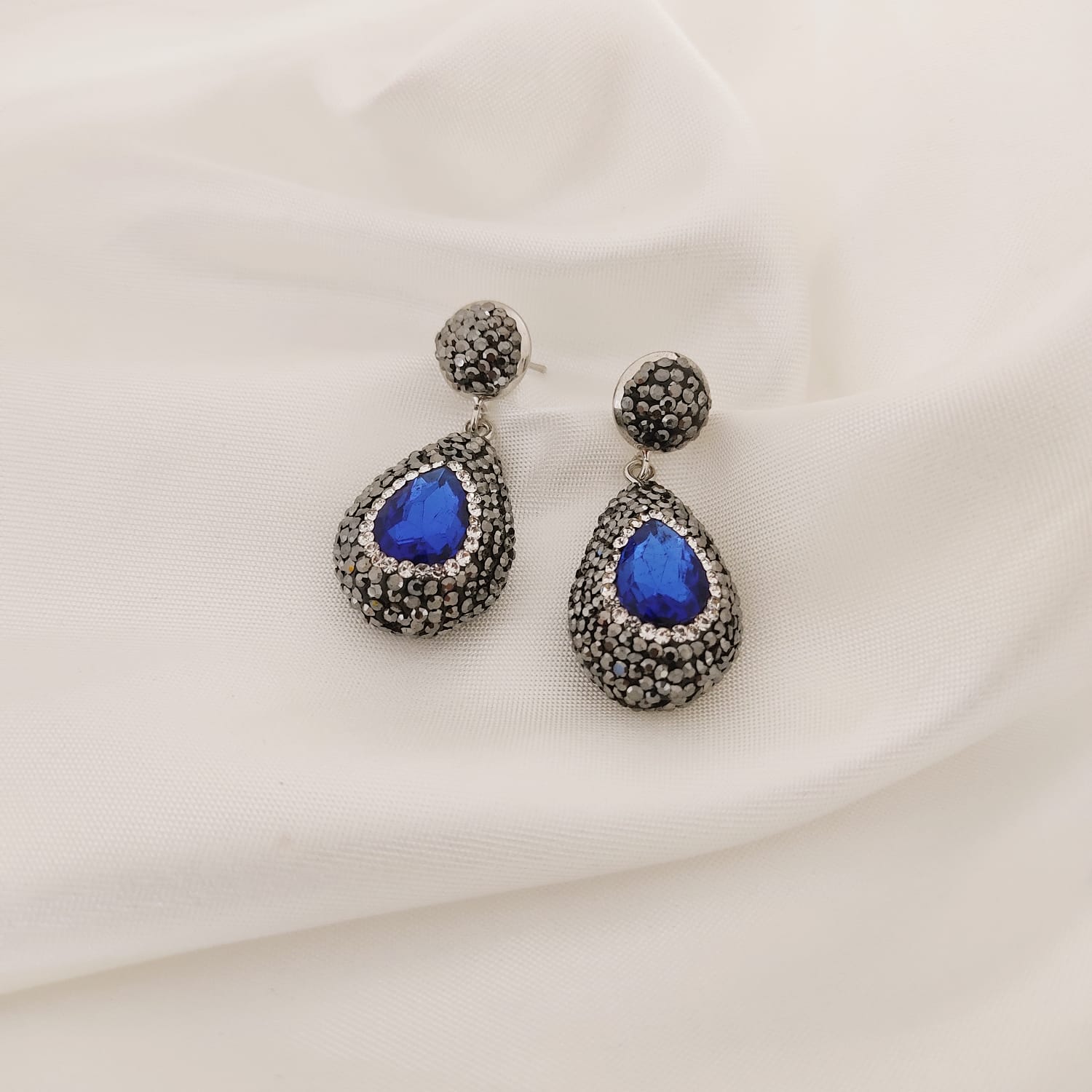 ARETE GOTA CRISTAL CONTORNO PLATA Y TURCO