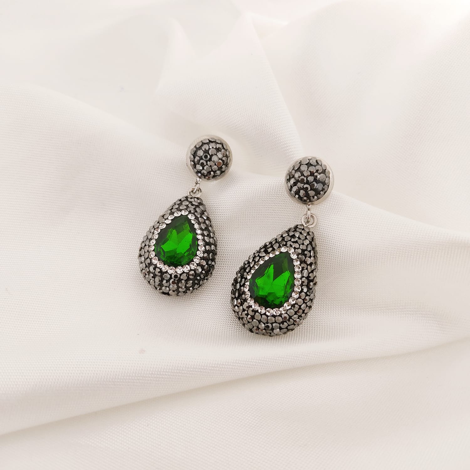 ARETE GOTA CRISTAL CONTORNO PLATA Y TURCO