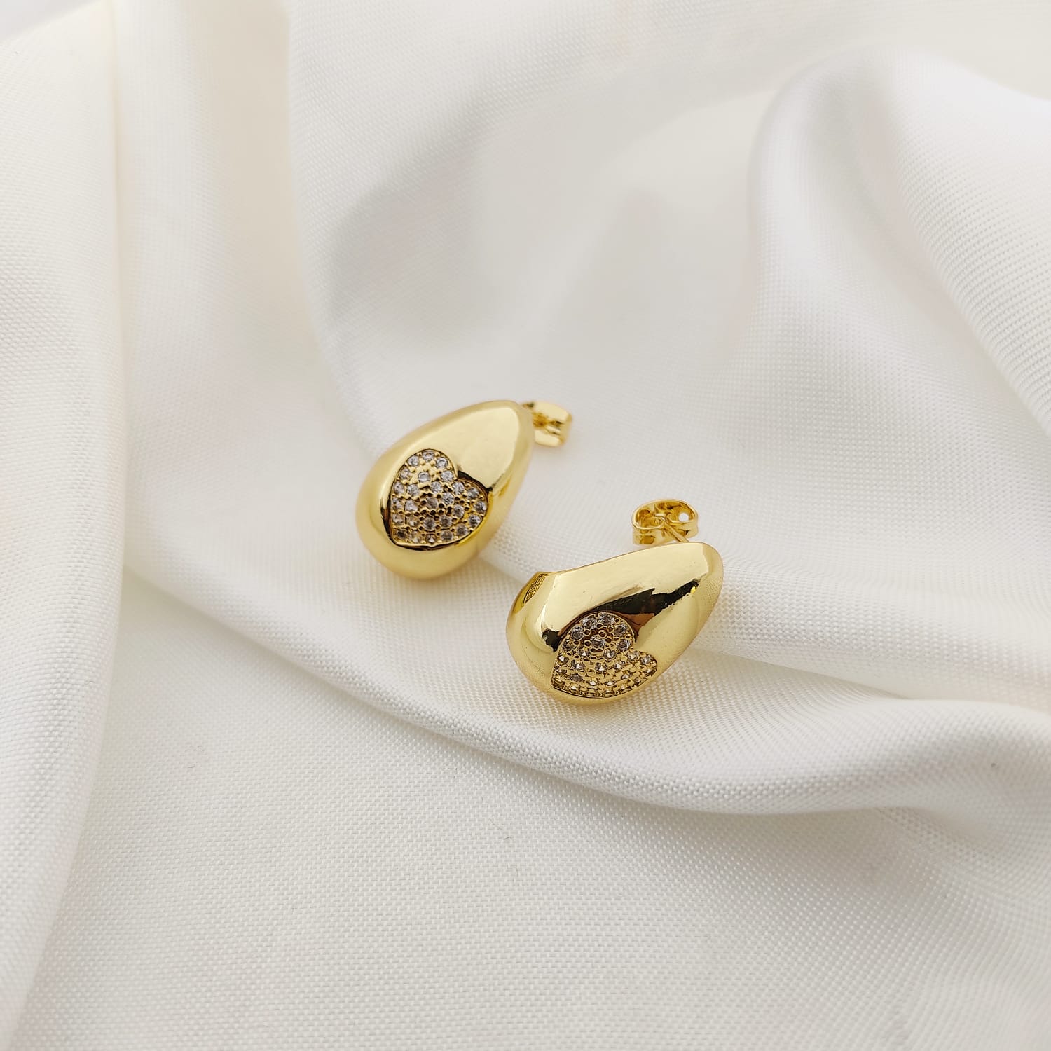ARETE GOTA LISA CORAZON CIRCONIAS EN MEDIO