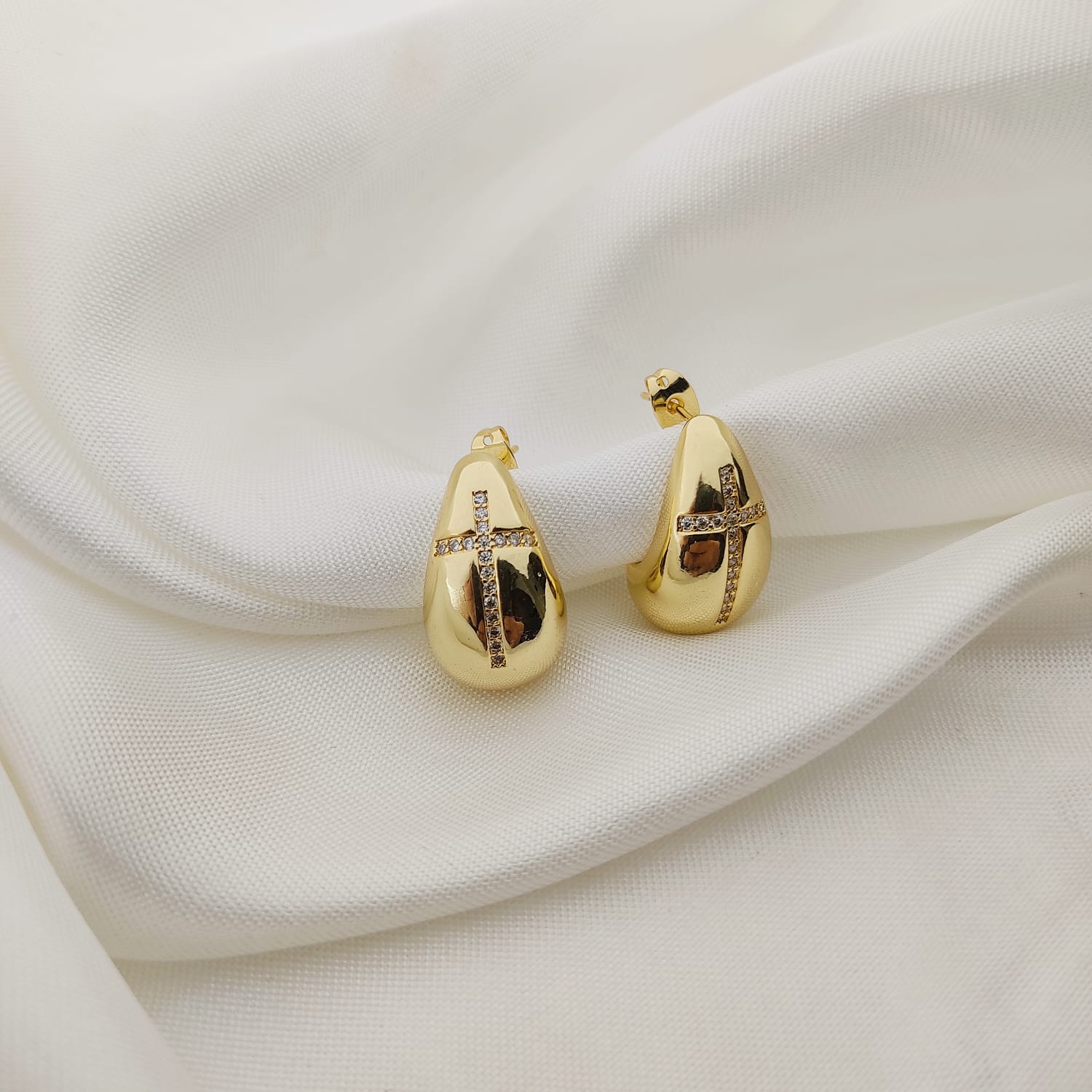 ARETE GOTA LISA CRUZ CIRCONIAS EN MEDIO