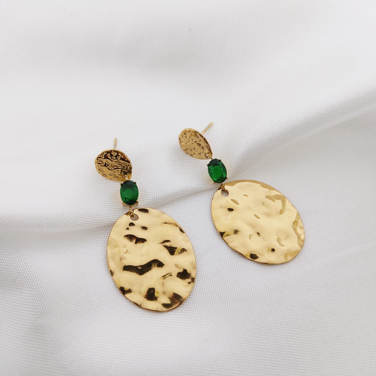 ARETE OVALO MARTILLADO CON ZIRCONIA CUADRO