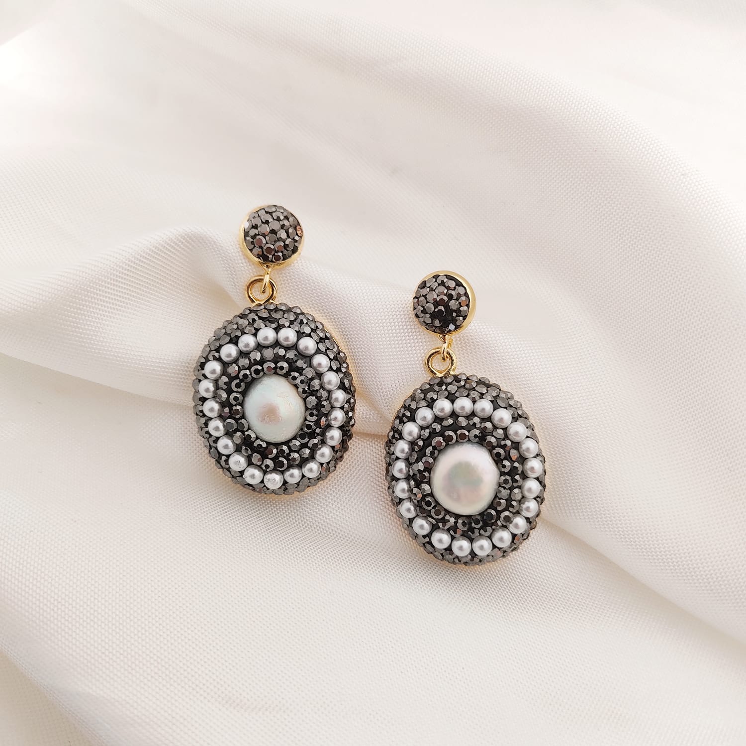 ARETE PERLA NATURAL CON ZIRCONIAS Y PERLITAS ALREDEDOR