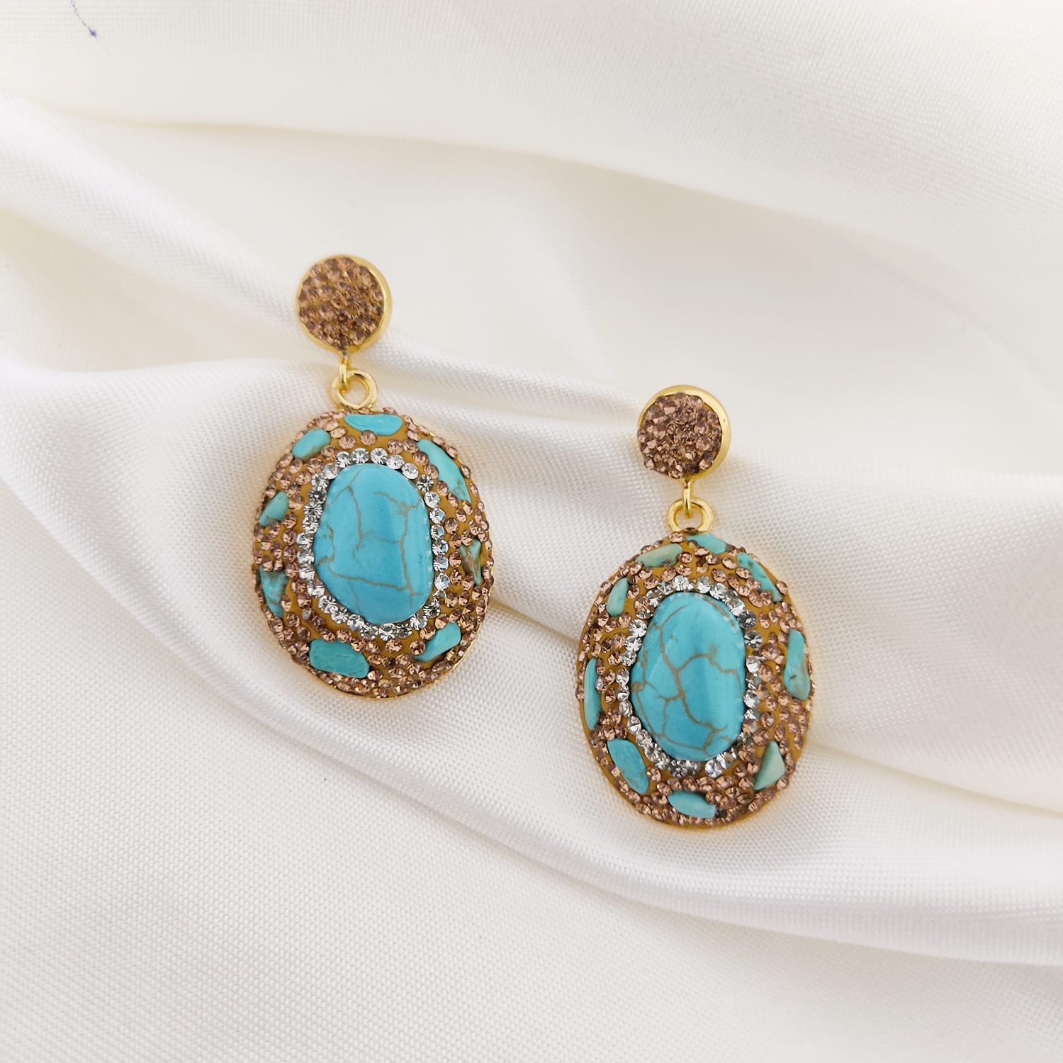 ARETE PIEDRA TURQUESA DOBLE ZIRCONIAS Y PIEDRITAS
