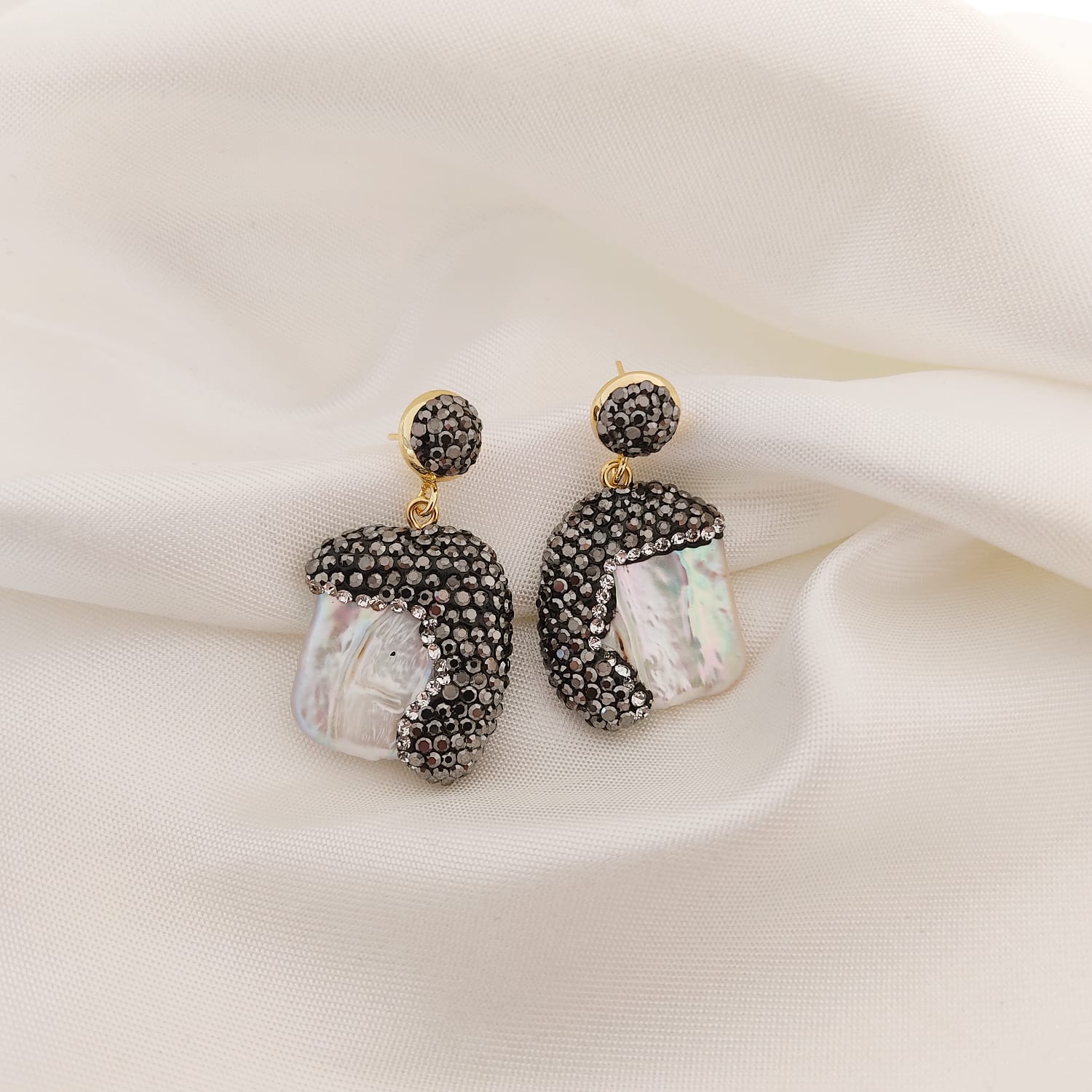 ARETE TURCO PERLA RECTANGULO CON OLAS EN NEGRO