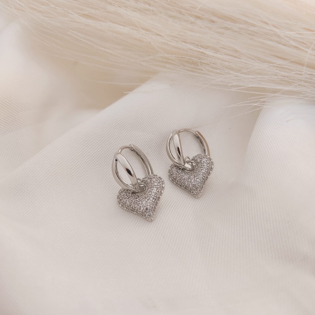 ARETES DIJE CORAZON PAVE COLGANTE CIRCONIAS