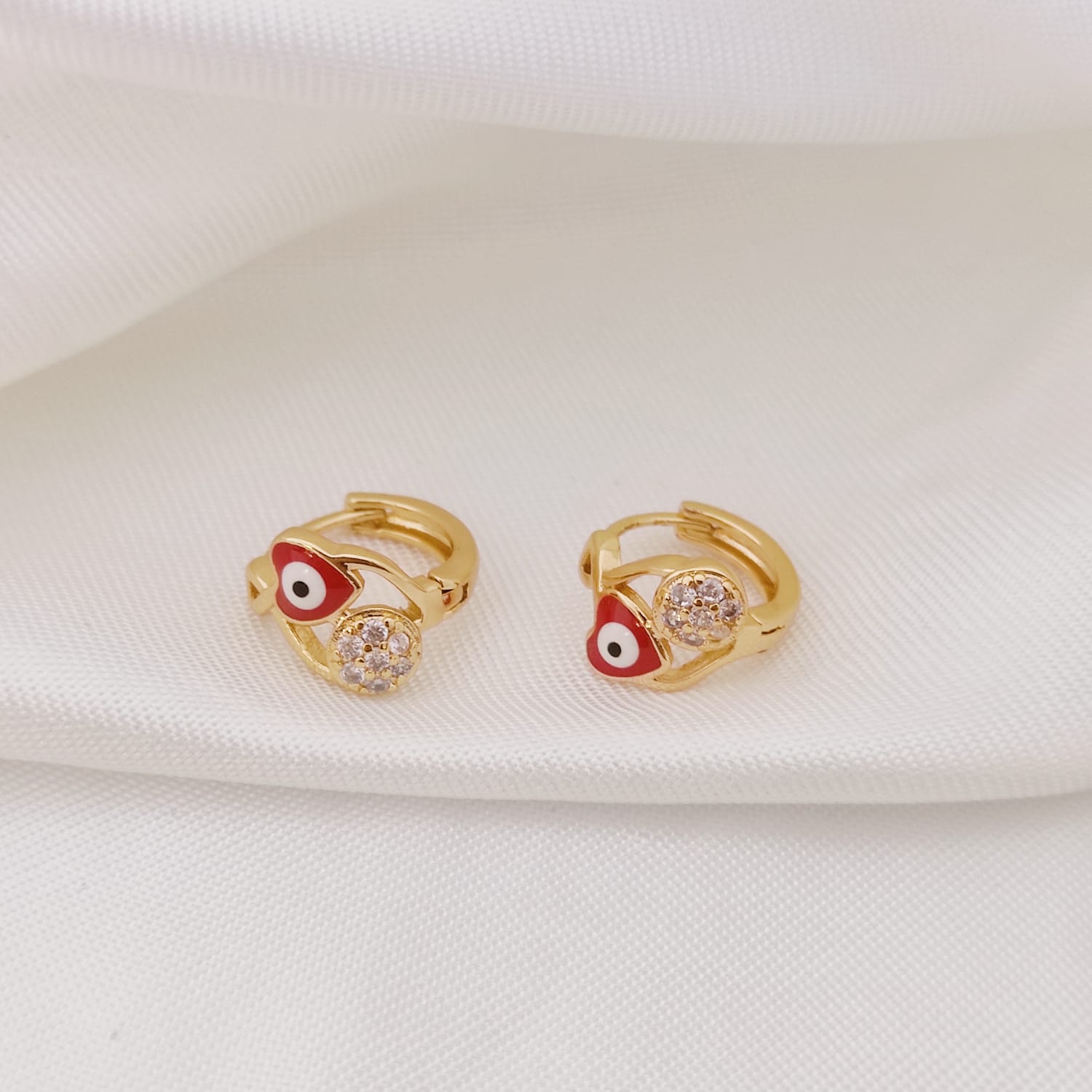 ARRACADA HUGGIE CORAZON Y CIRCULO CZ EN PESCADO