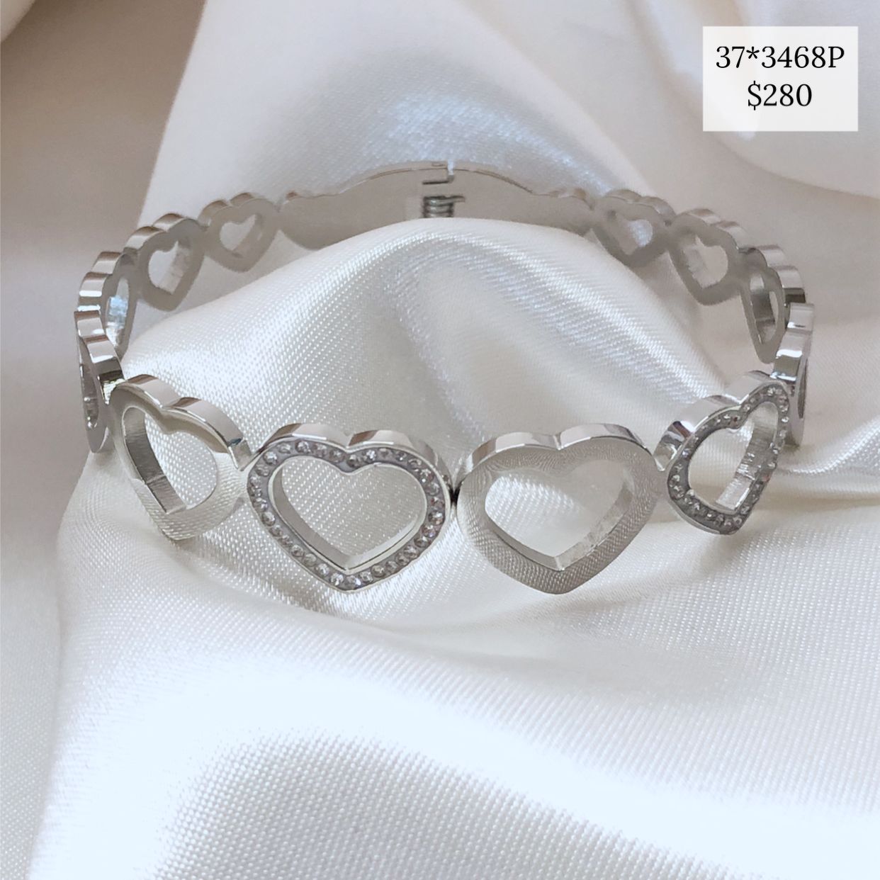 BRAZALETE CORAZONES BRILLOS PLATA