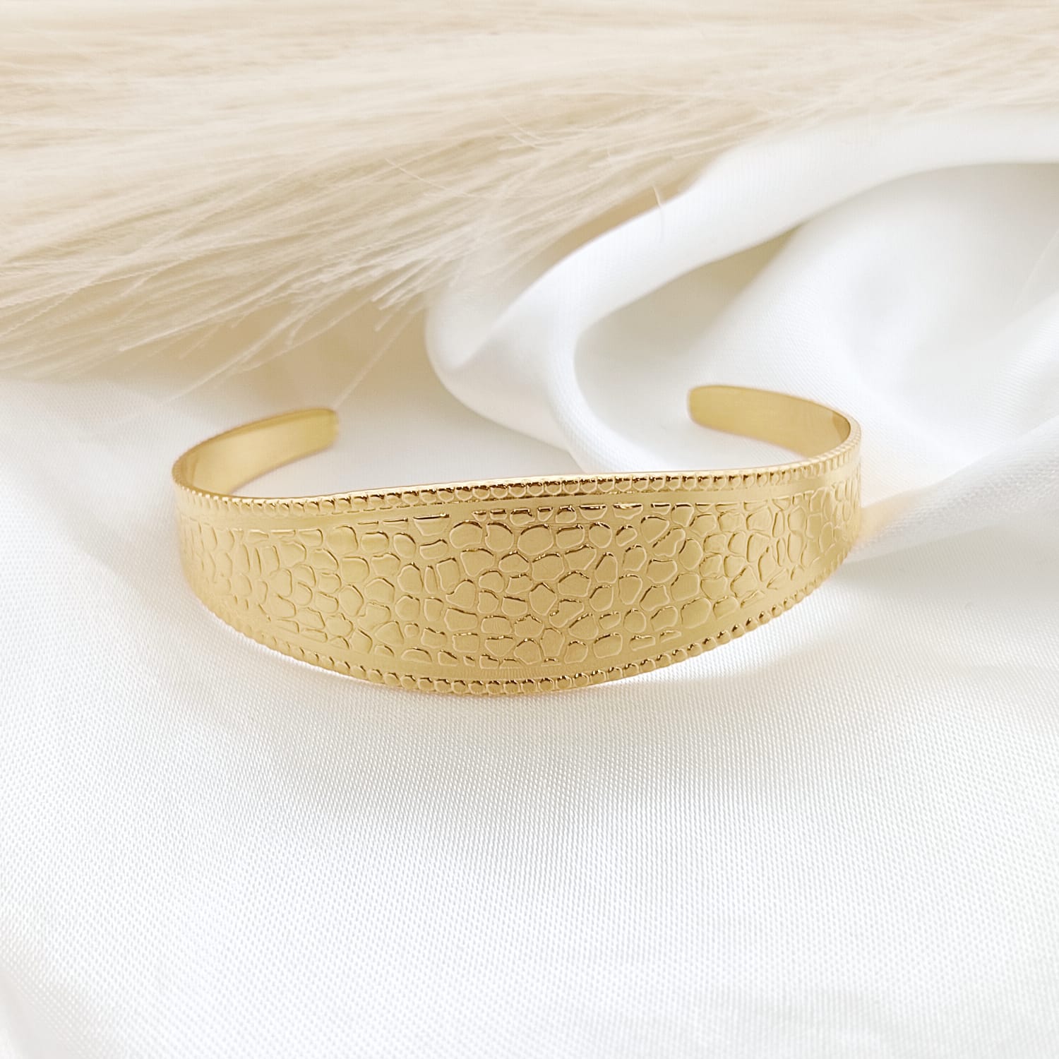 BRAZALETE GRABADO PIEDRA RIELES A LOS LADOS TORSAL CENTRO ANCHO