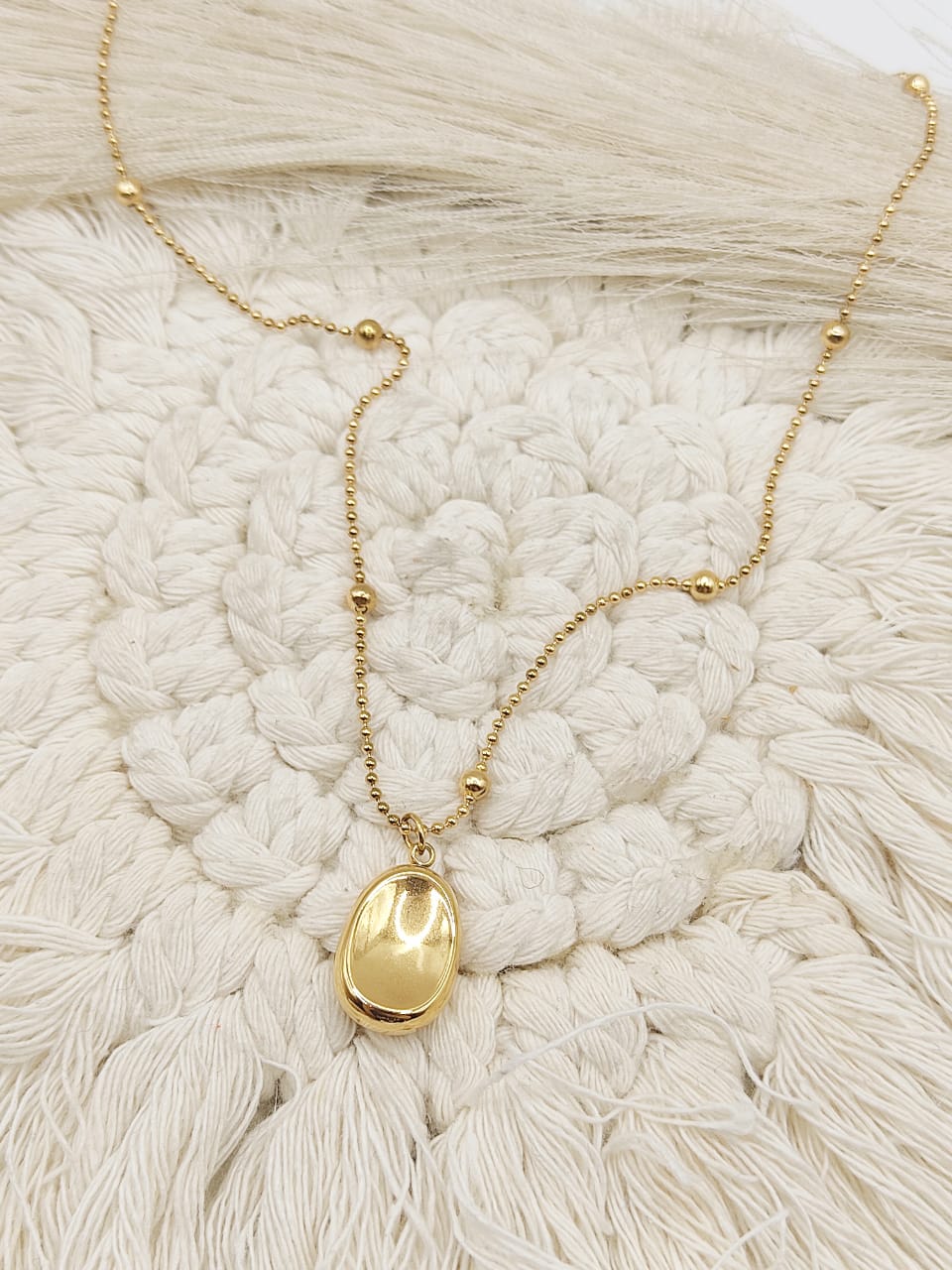 CADENA BOLITAS DIJE OVALO APACHURRADO