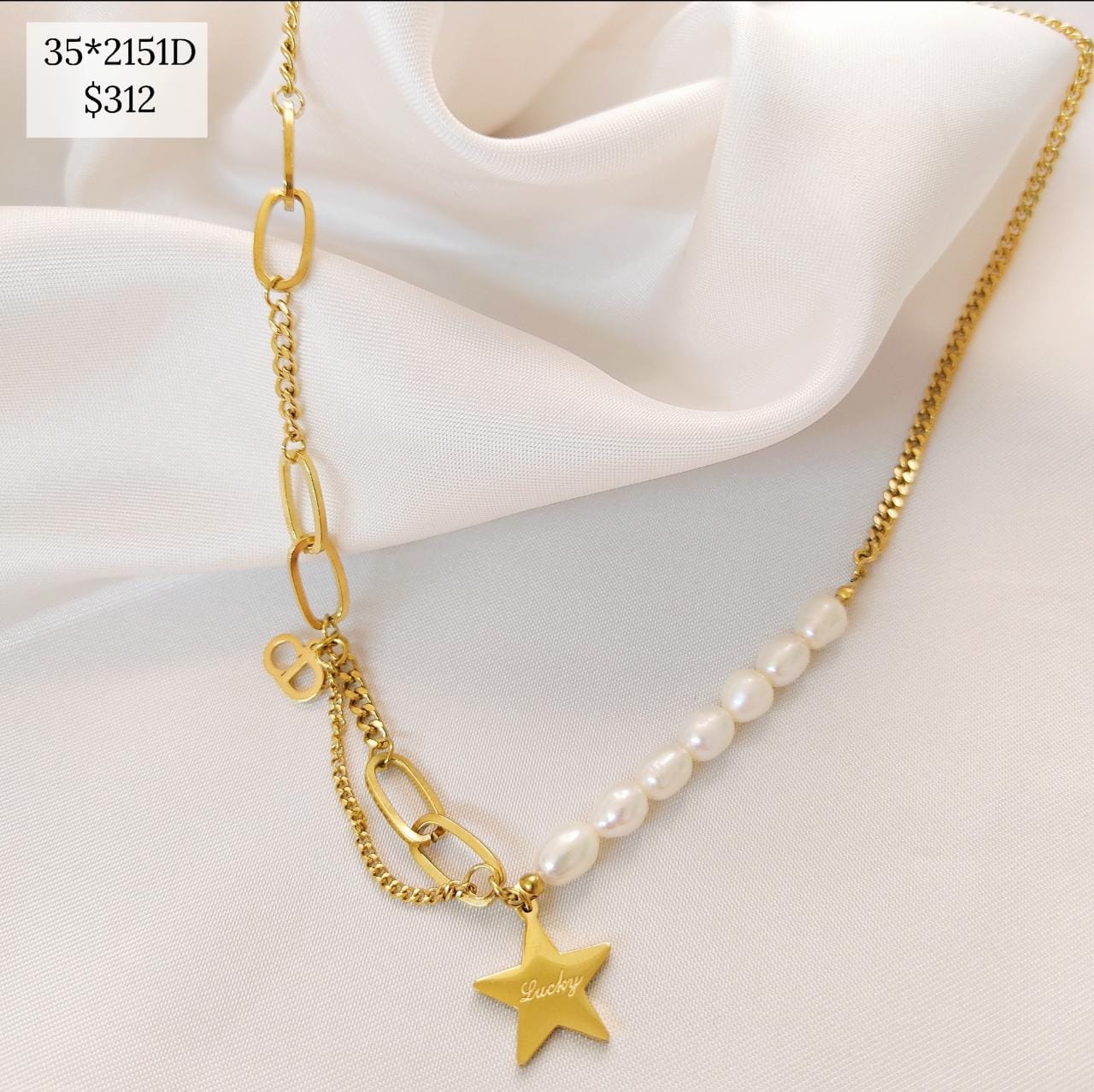 CADENA MITAD PERLA Y DIJES ESTRELLA COLGANDO