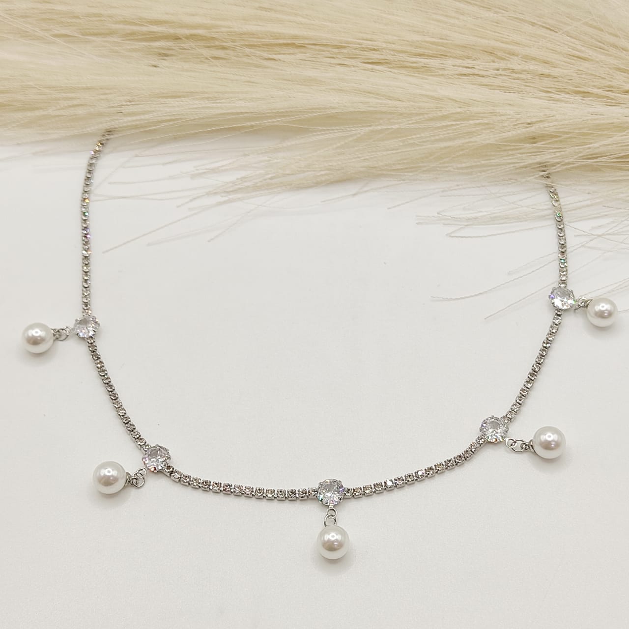 CHOKER CADENA BRILLO CON CZ CON PERLAS COLGANDO