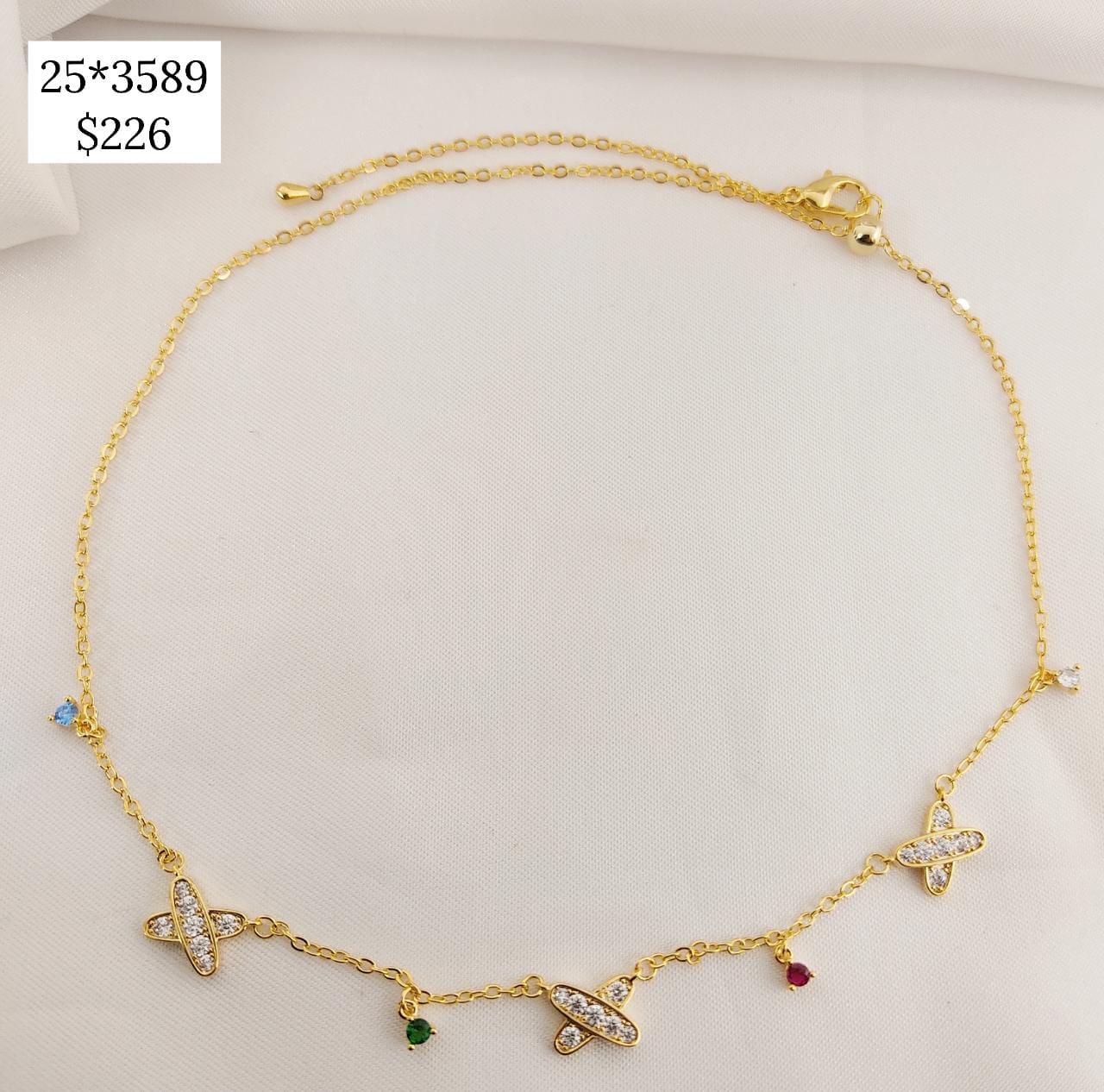 CHOKER MARIPOSAS PAVE Y ZIRCONIA COLORES