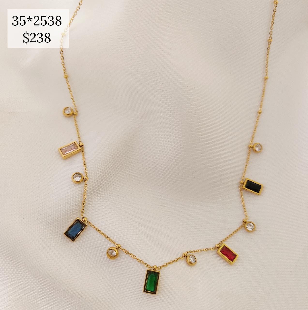 COLLAR BAGUETTE COLORES Y ZIRCONIA BLANCA