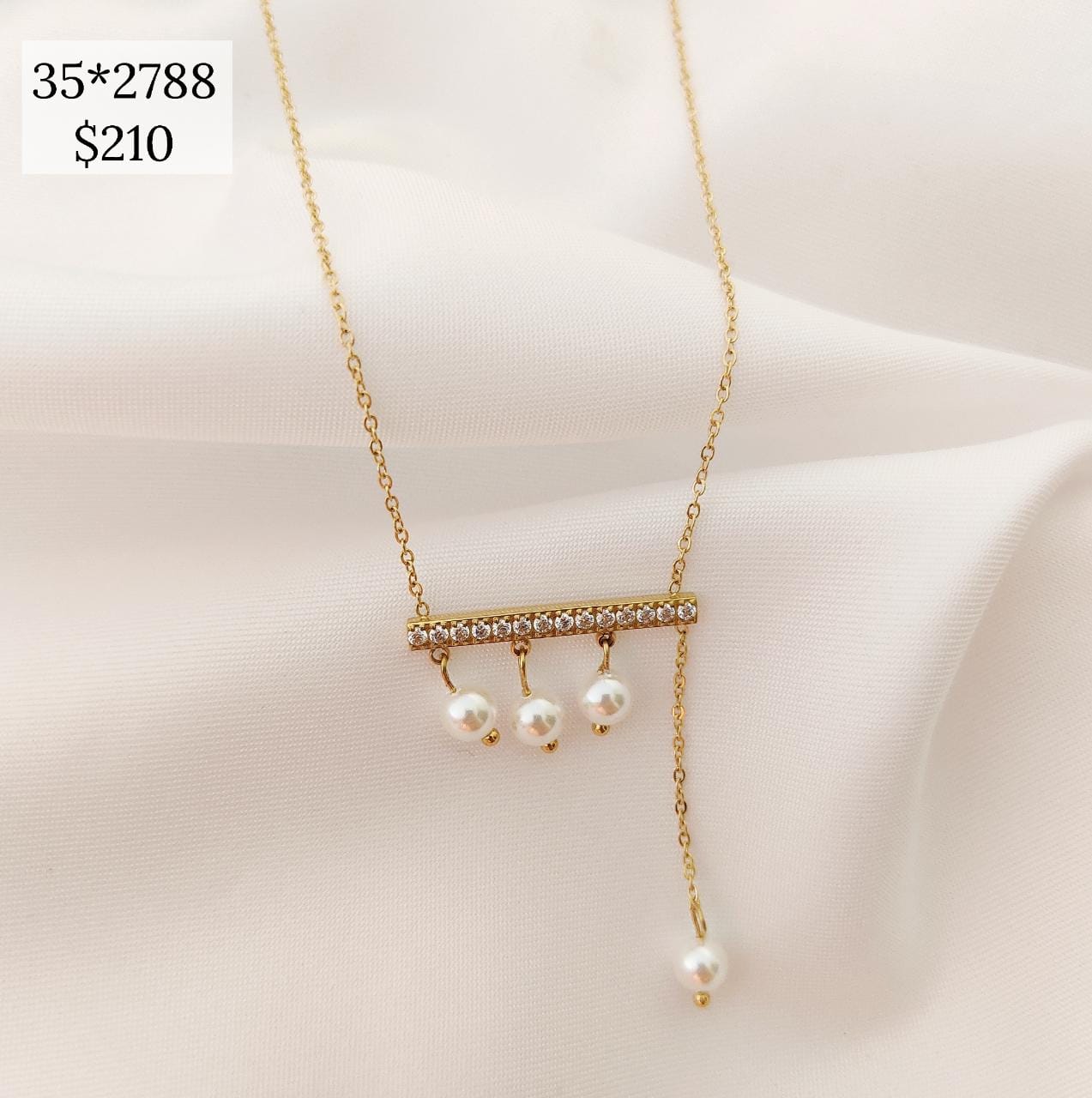 COLLAR BARRA CON ZIRCONIAS Y PERLAS COLGANTES