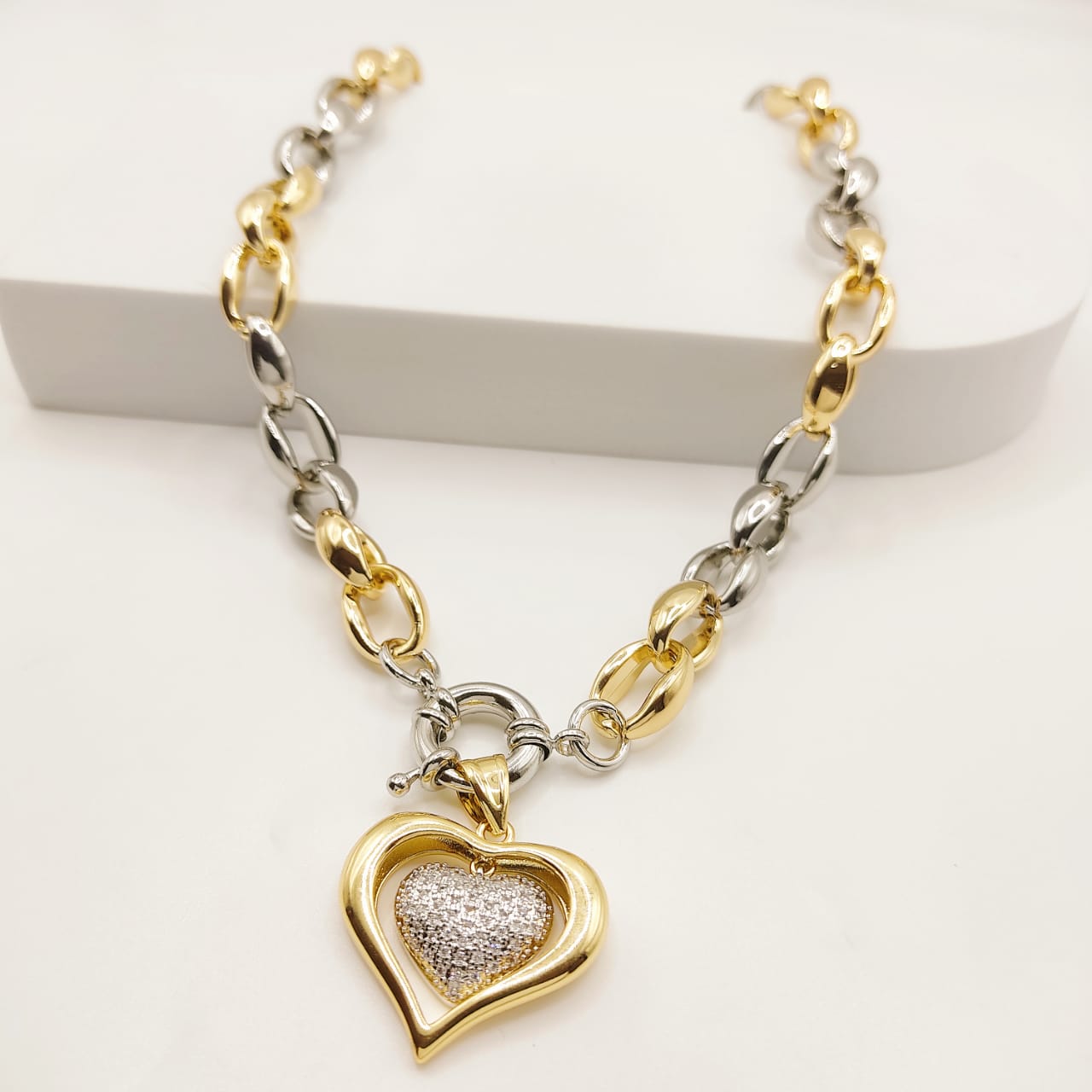COLLAR CAD OVALO CH DIJE CORAZON DOBLE CENTRO PAVE
