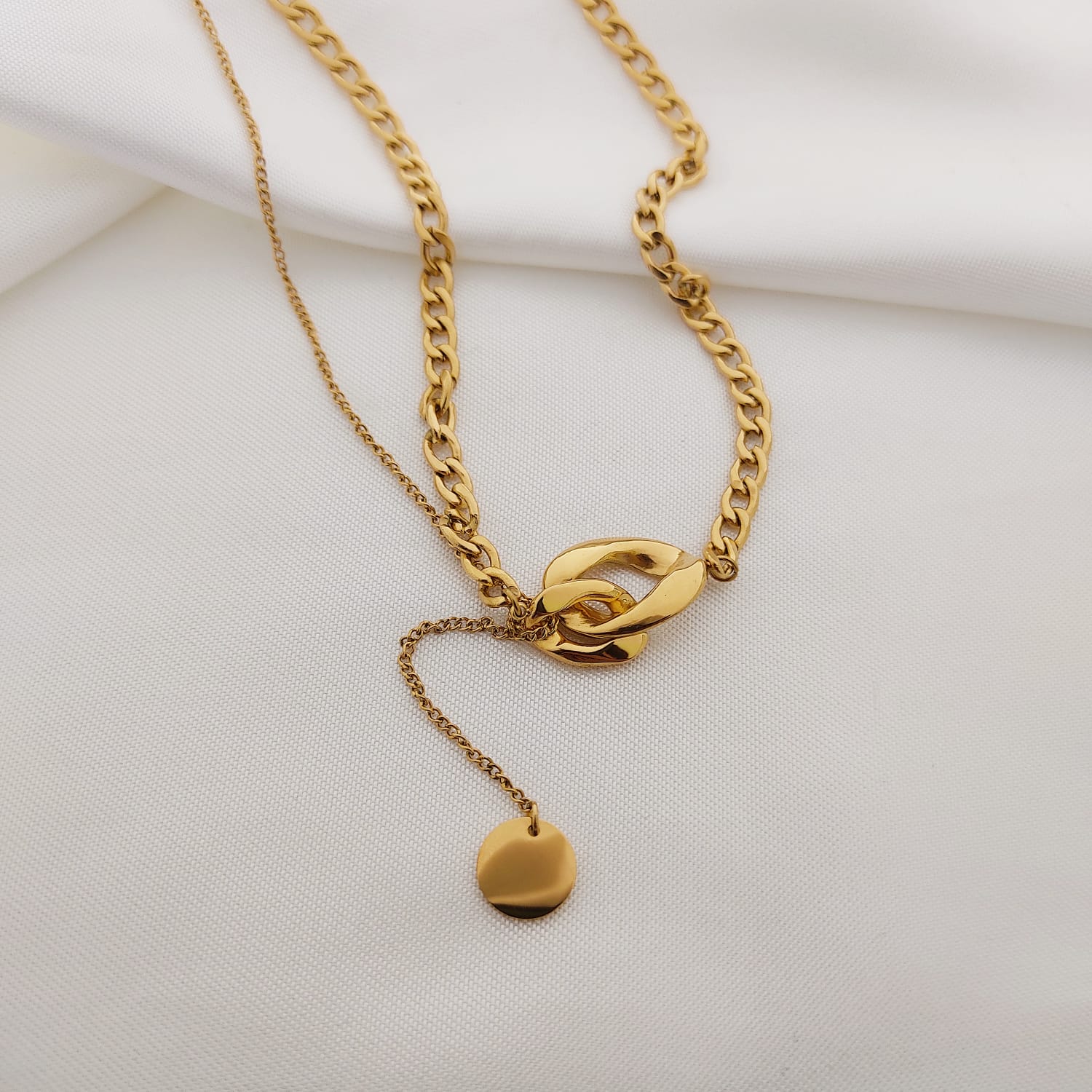 COLLAR CAD PLANCHADA CON ENGRANES GRANDES Y DIJE DISCO COLGANDO