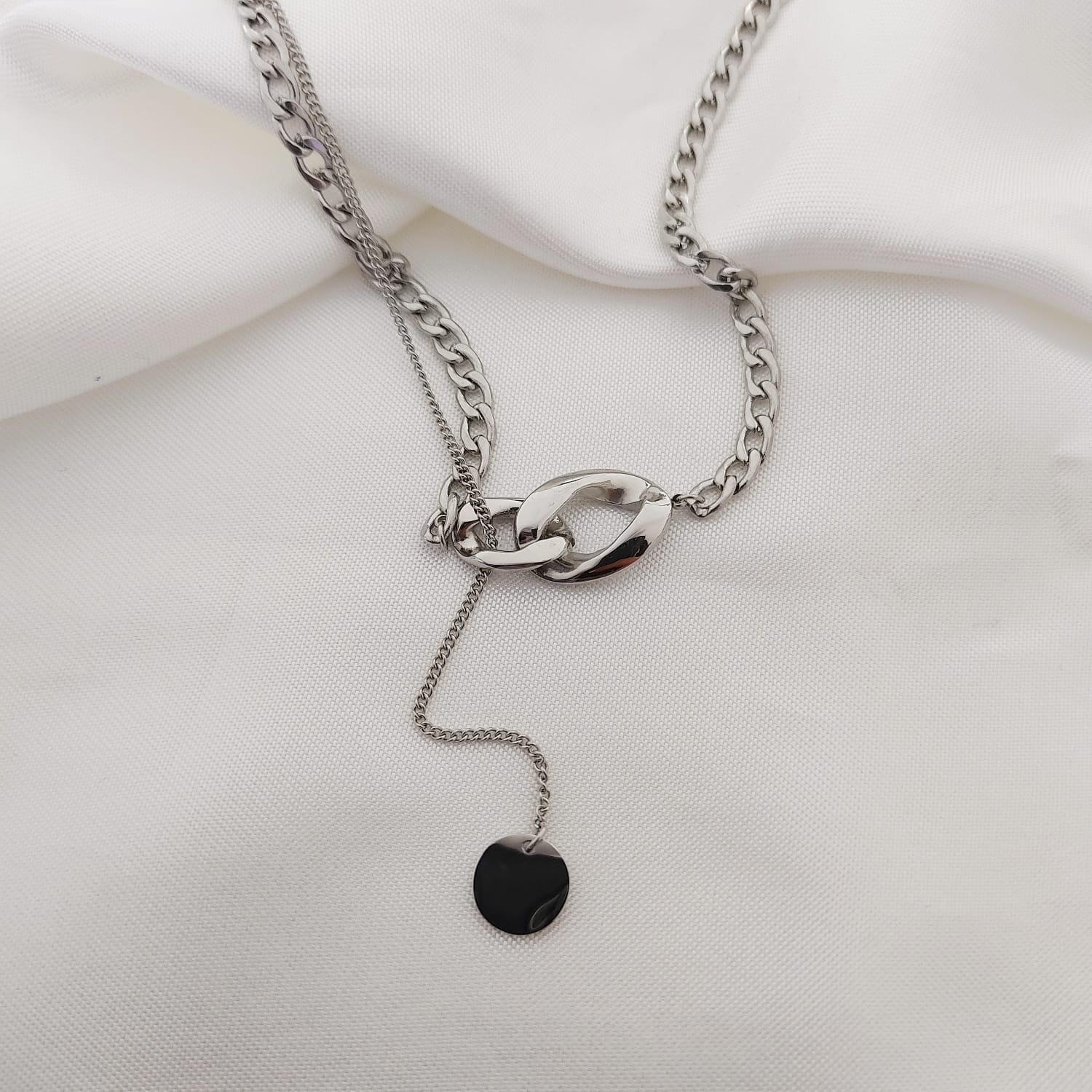 COLLAR CAD PLANCHADA CON ENGRANES GRANDES Y DIJE DISCO COLGANDO