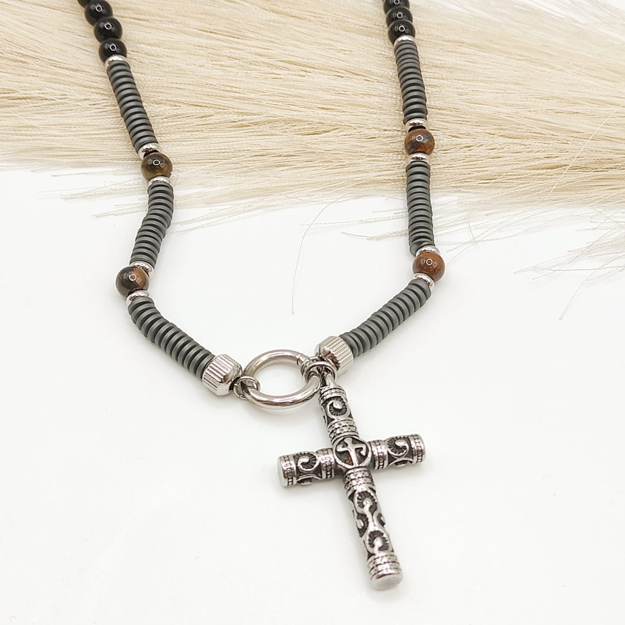 COLLAR CADENA CON PIEDRA RONDANA DIJE CRUZ NUDO CENTRO