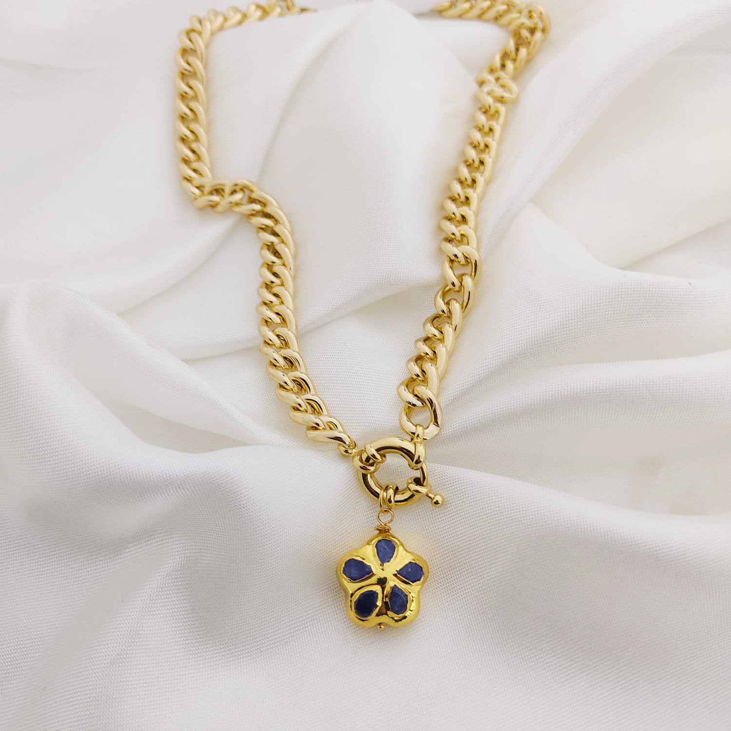 COLLAR CADENA PLANCHADA BROCHE MARINERO DIJE FLOR 5 PETALOS