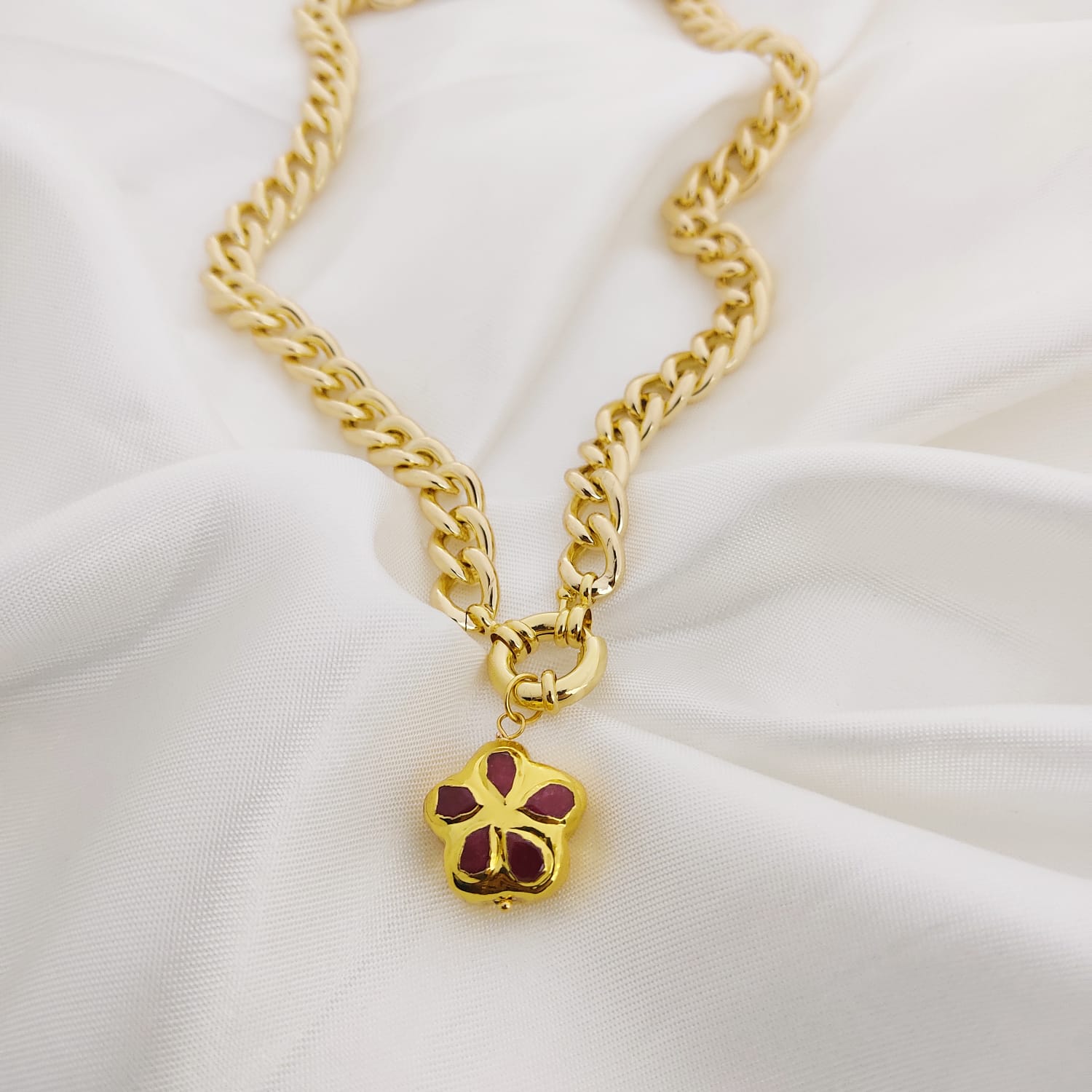 COLLAR CADENA PLANCHADA BROCHE MARINERO DIJE FLOR 5 PETALOS