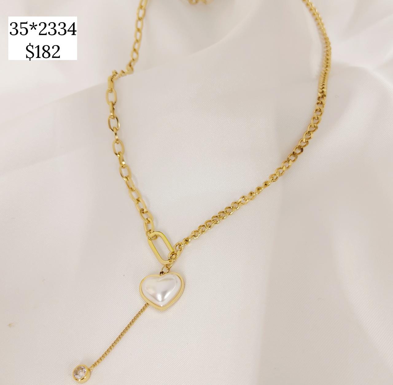 COLLAR CADENA PLANCHADA DIJE CORAZON PERLA