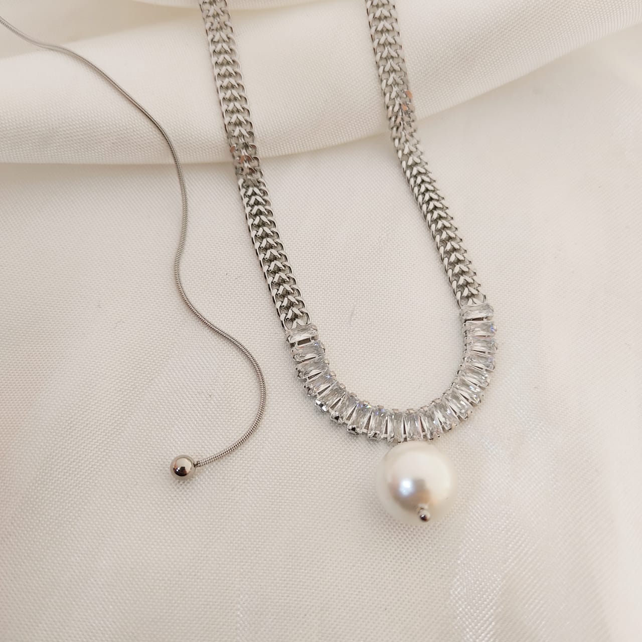 COLLAR CADENA PLANCHADA DIJE PERLA