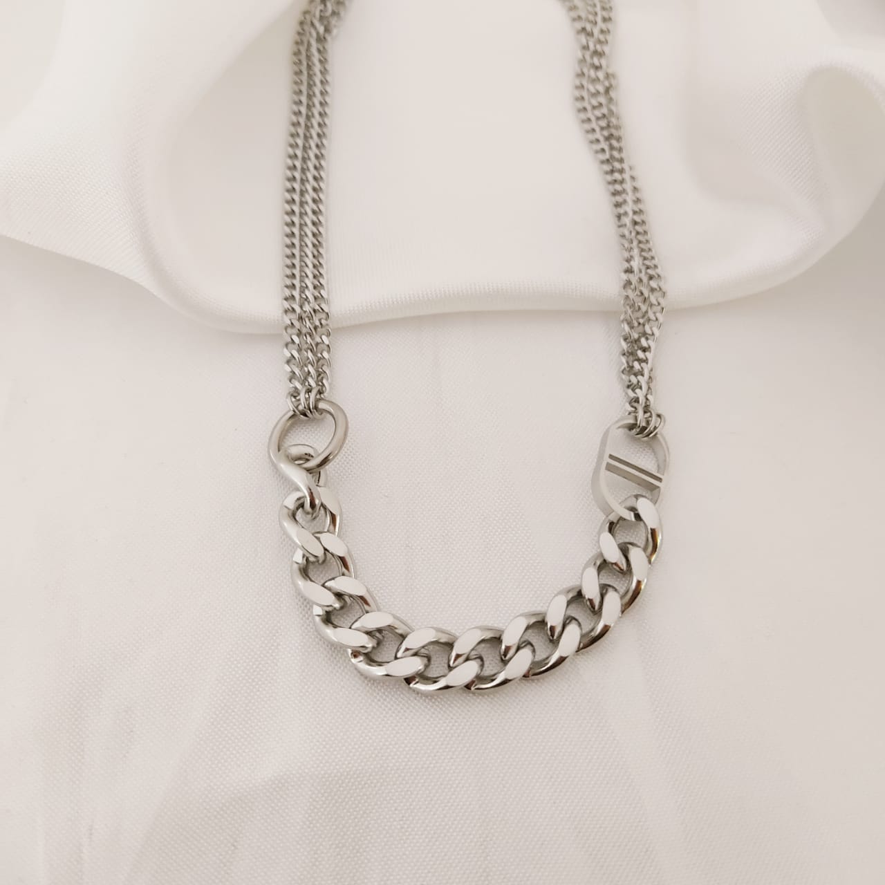 COLLAR CADENAS DIFERENTES OVALO RAYA EN MEDIO