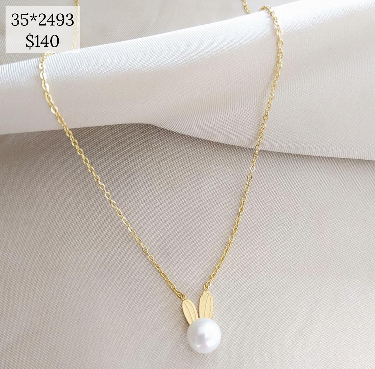 COLLAR CONEJO PERLA OREJAS DORADAS