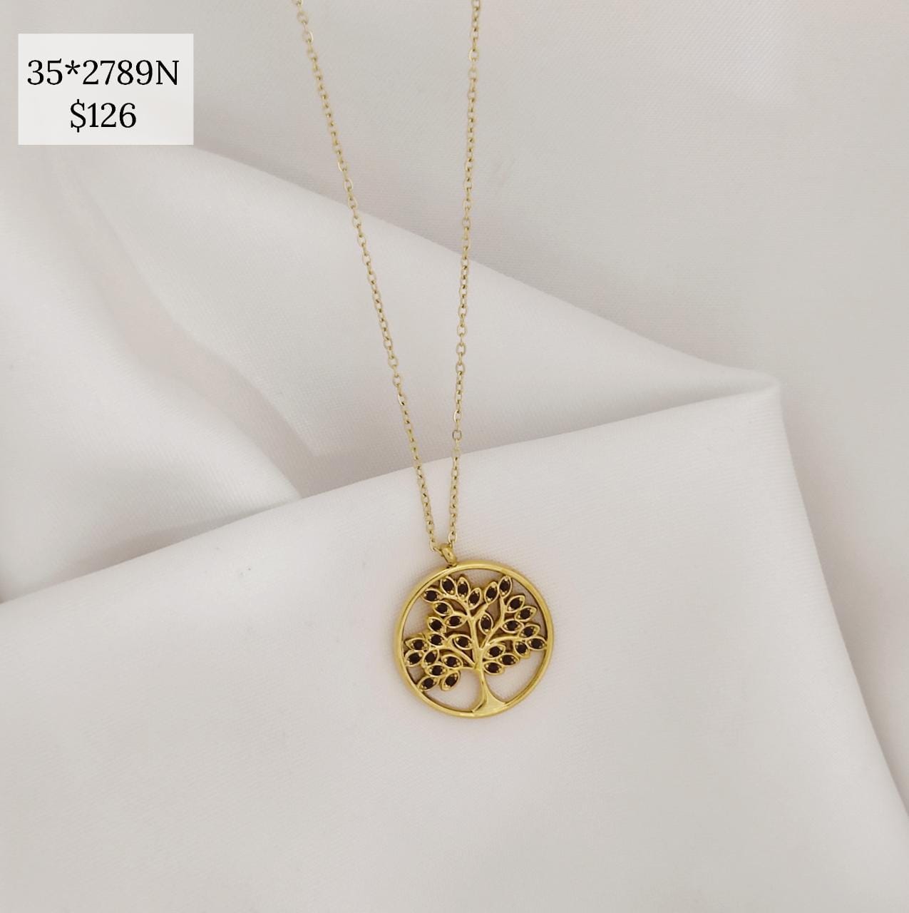 COLLAR DIJE CIRCULO CON ARBOL CZ