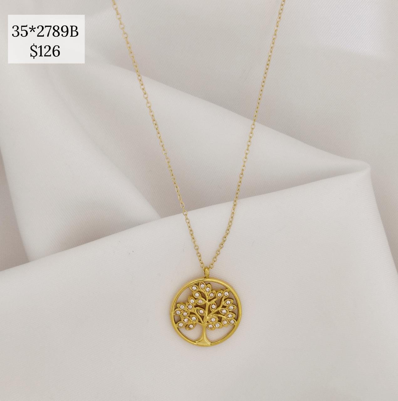 COLLAR DIJE CIRCULO CON ARBOL CZ