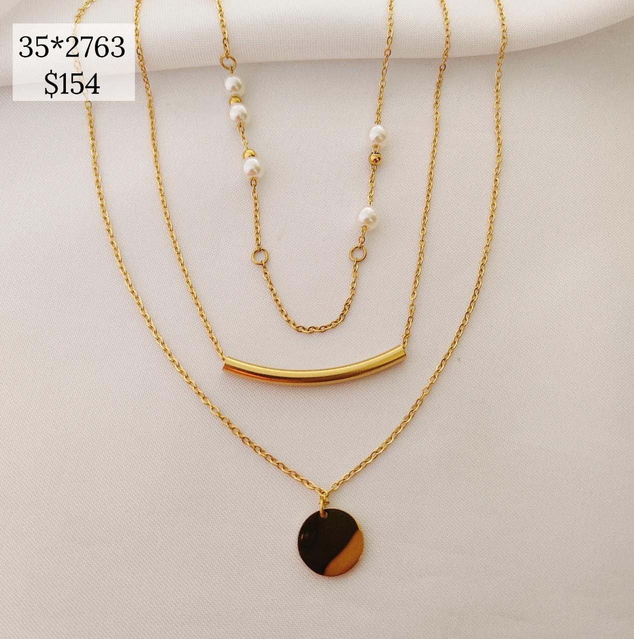 COLLAR DOBLE BARRA CURVA Y CIRCULO COLGANTE