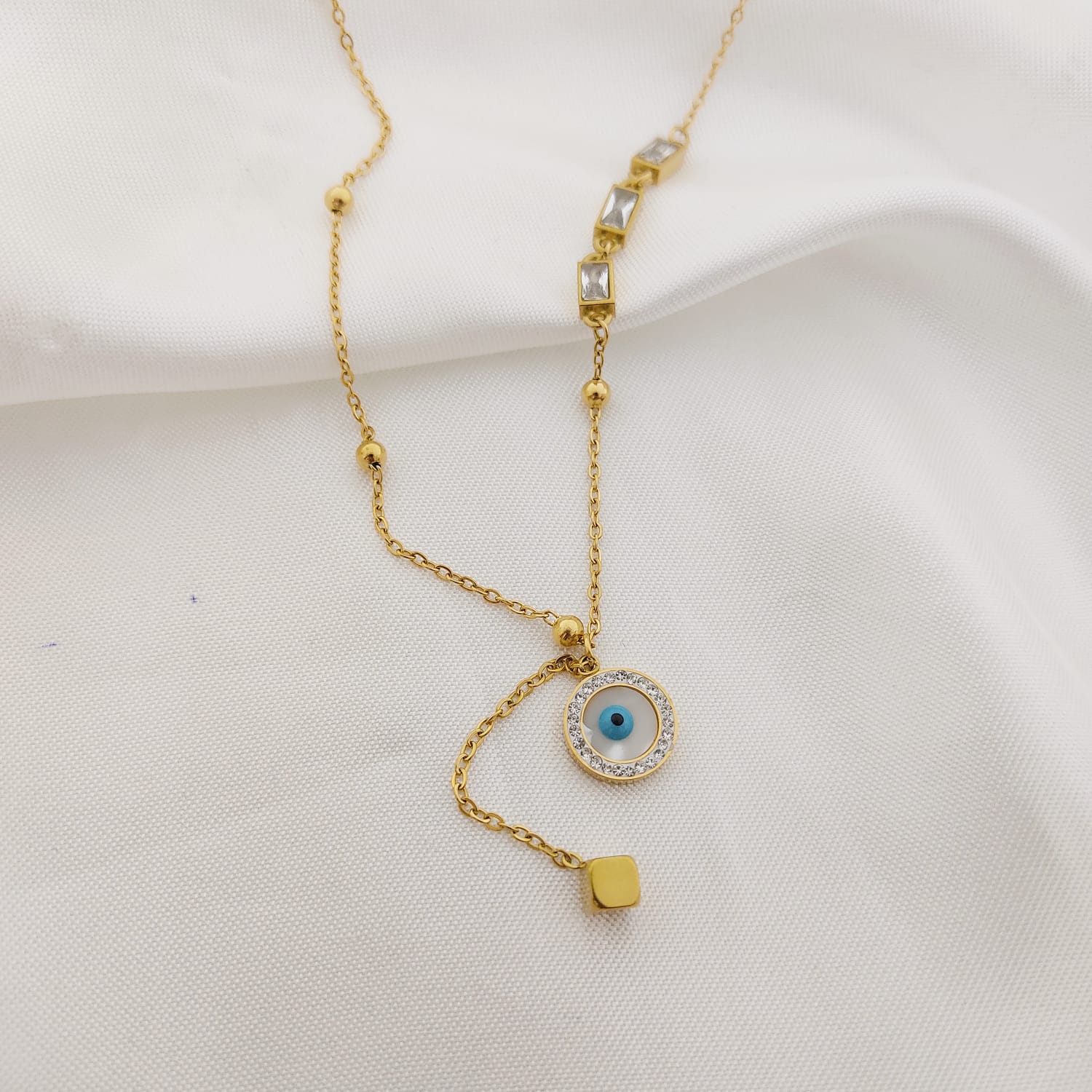 COLLAR DOBLE CADENA DIJE CIRCULO CON OJO MP