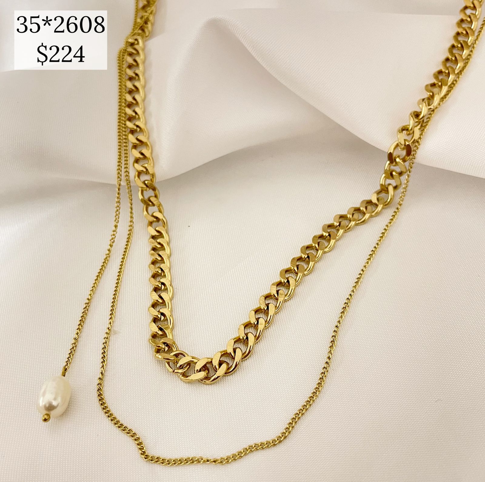 COLLAR DOBLE CADENA GRUESA Y DIJE CIRCULO