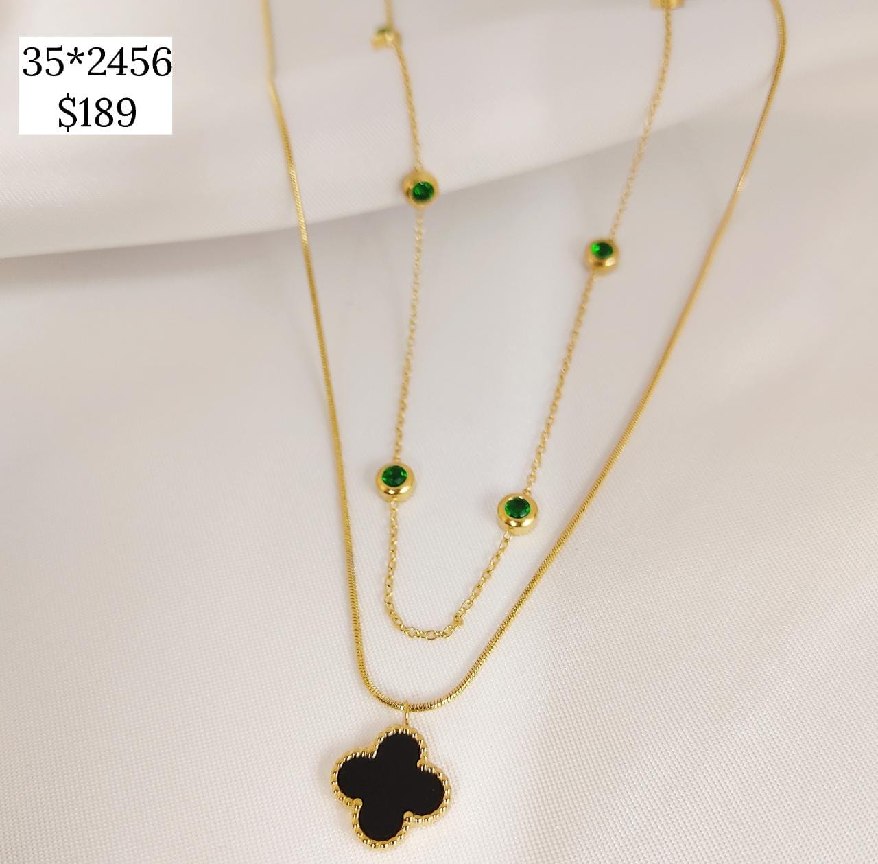 COLLAR DOBLE CON CIRCONIAS Y DIJE FLOR NEGRO